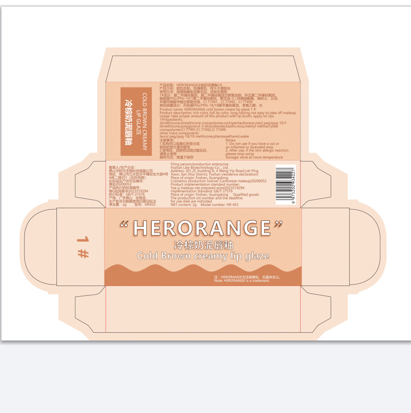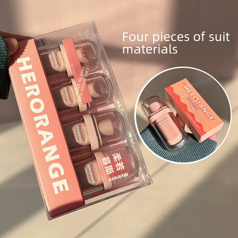 HERORANGE ~ cold brown milk mud Lip Glaze Matte Velvet Matte plain face white color holding mouth red mud student lip gloss