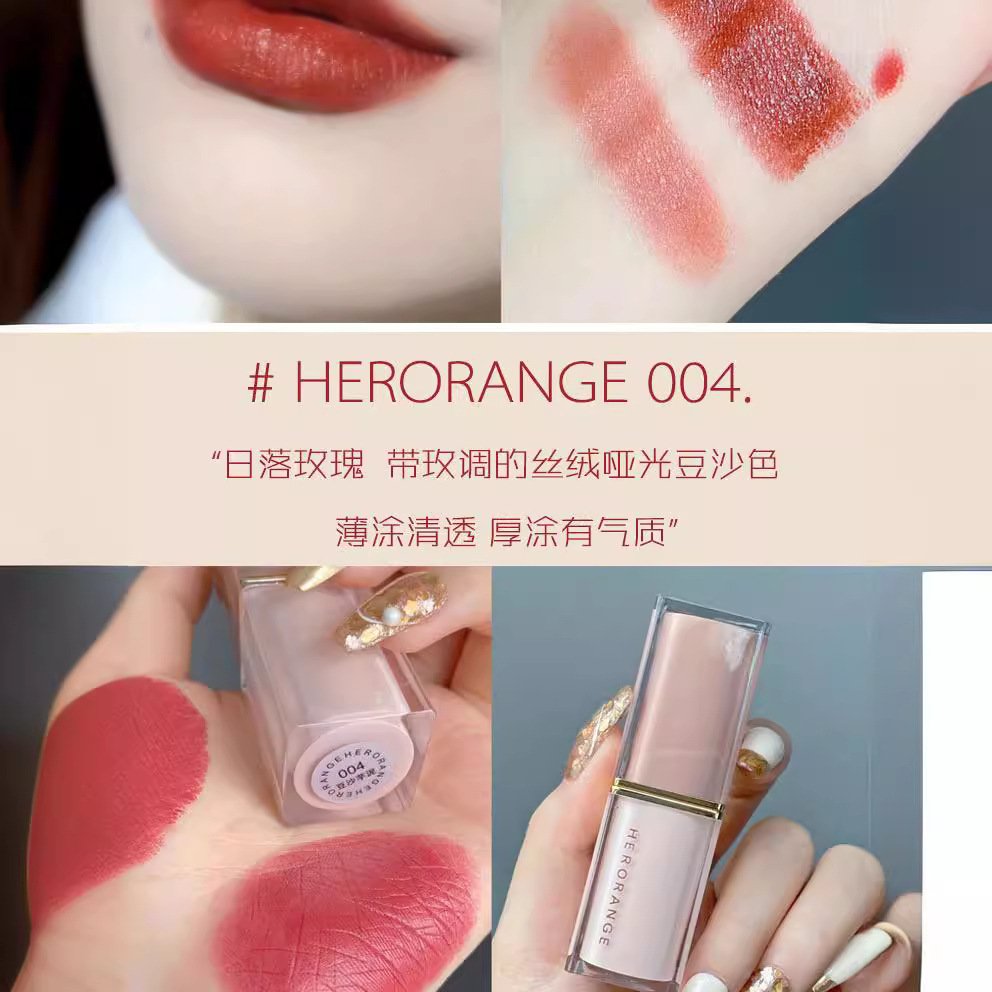 | nameOriginal | ~ HERORANGE Crystal Fog Square Tube Lipstick Folding Packaging Fog Sense Matte High Color Value Color Lipstick She Orange |