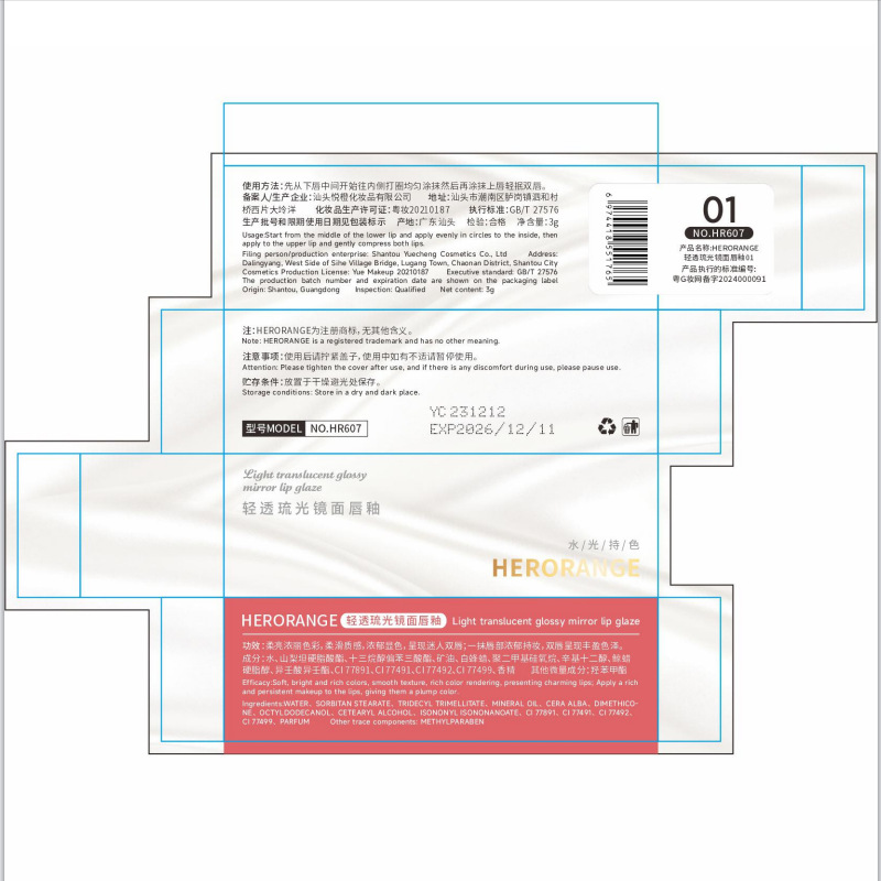 HERORANGE ~ light transparent light mirror Lip Glaze Water Light Pure desire glass lip white long-lasting not easy to touch Cup lip gloss