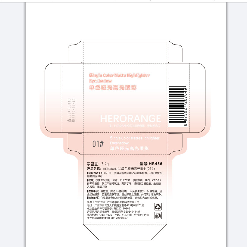 | nameOriginal | HERORANGE ~ monochrome matte high-gloss eyeshadow powder delicate and lasting color rendering natural brightening repair Integrated Plate |