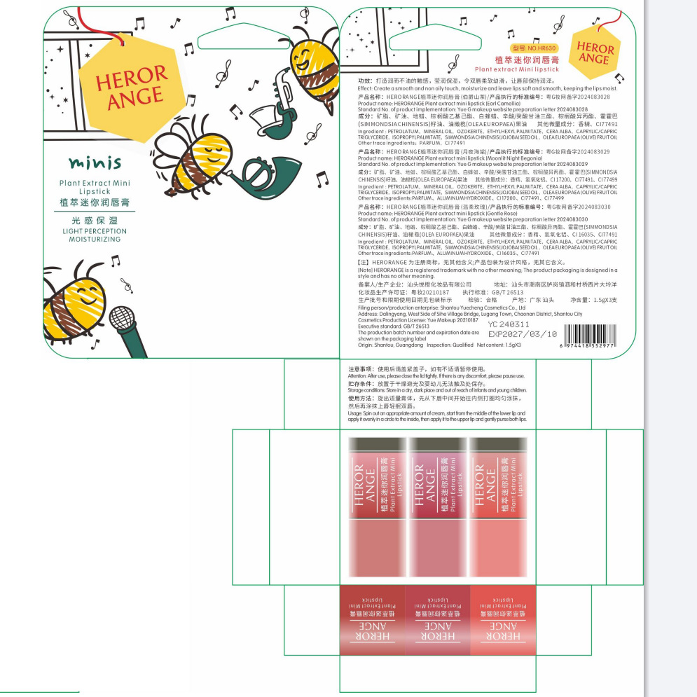 | nameOriginal | HERORANGE ~ Plant Extract Mini Lip Balm Hydrating and Moisturizing Lip Pattern Makeup Front Lipstick Base Colored Lipstick |