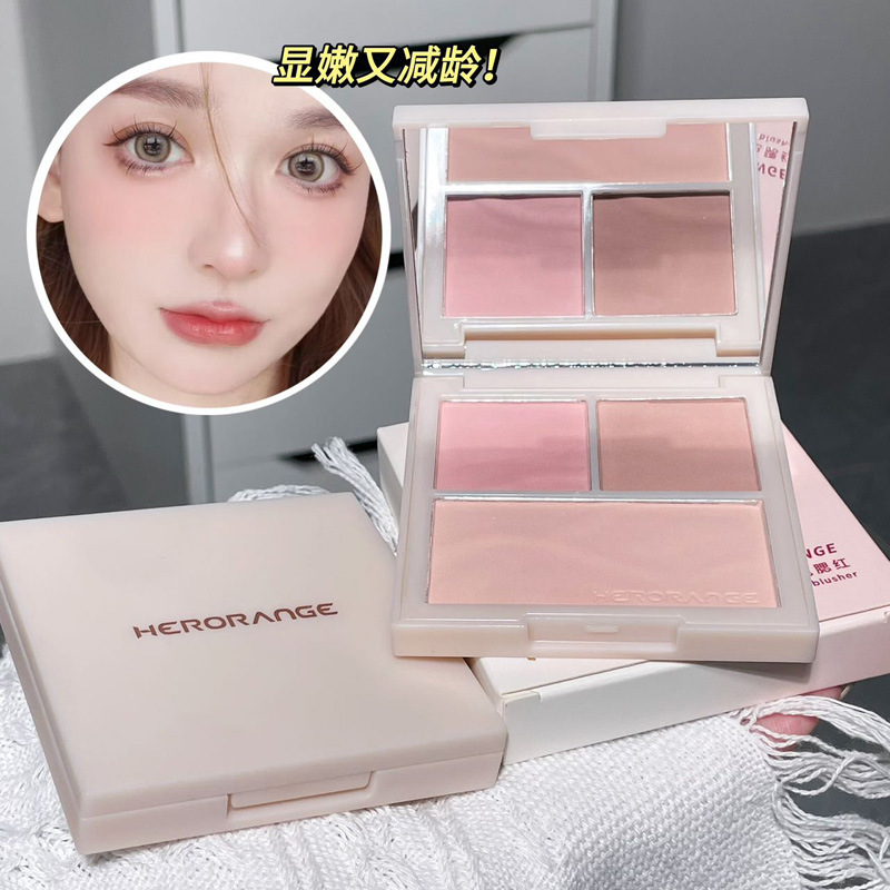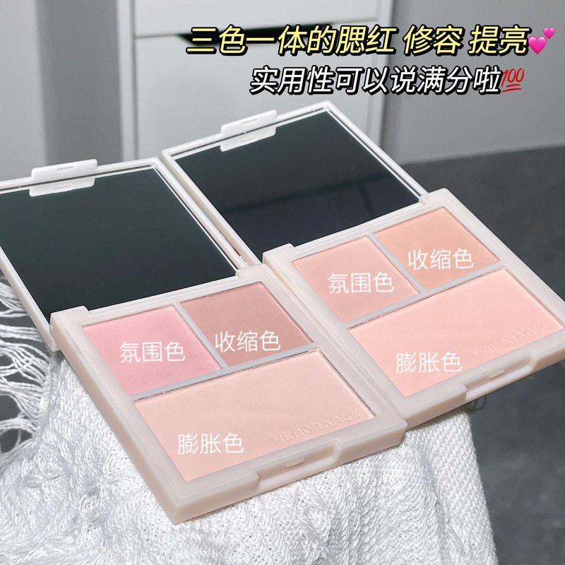 | nameOriginal | HERORANGE ~ three-color blush plate expansion and contraction color matte natural nude shadow highlight repair Integrated Plate |