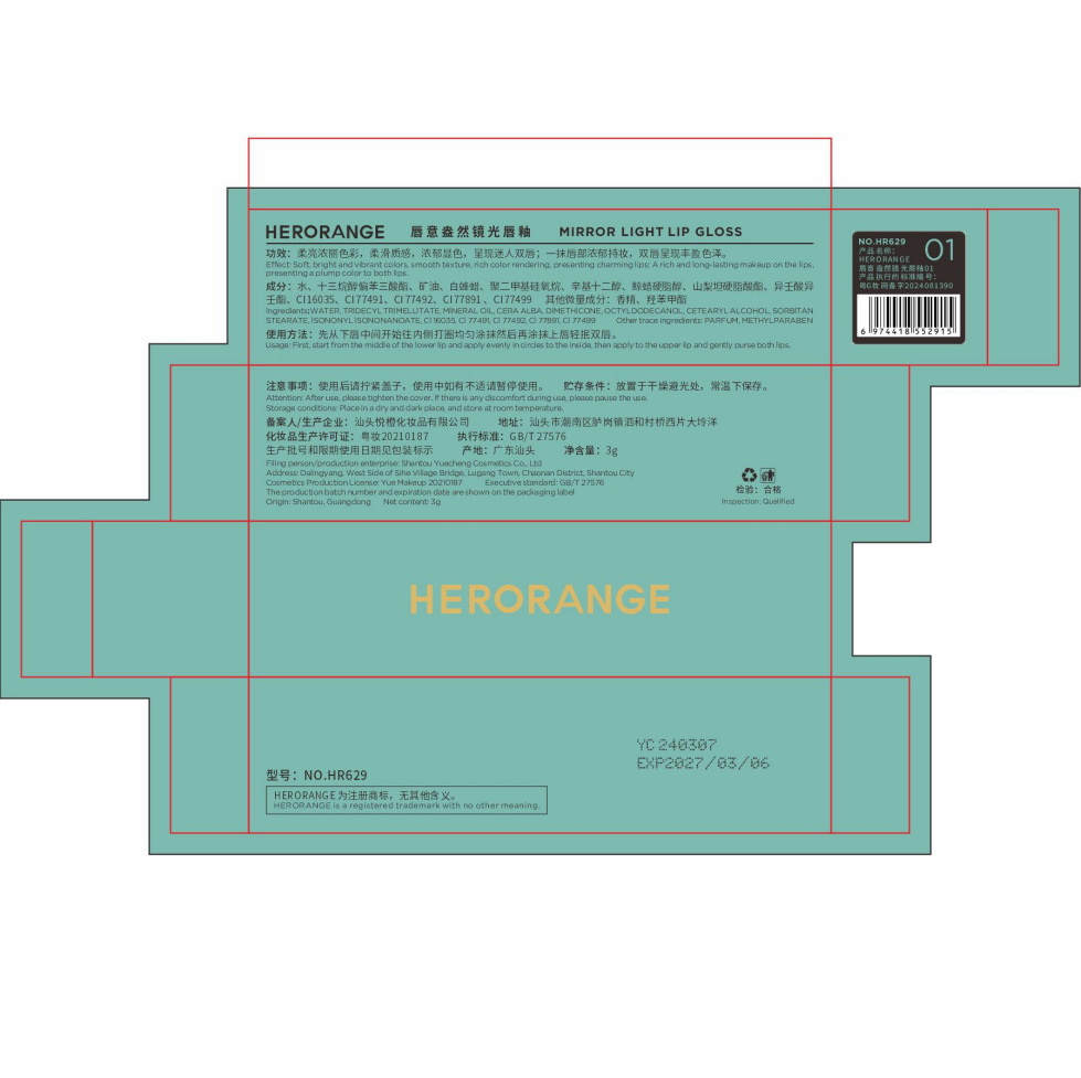 HERORANGE ~ water-moistened mirror light lip glaze lasting color development is not easy to fade film-forming water-sensitive doodle mirror lip gloss