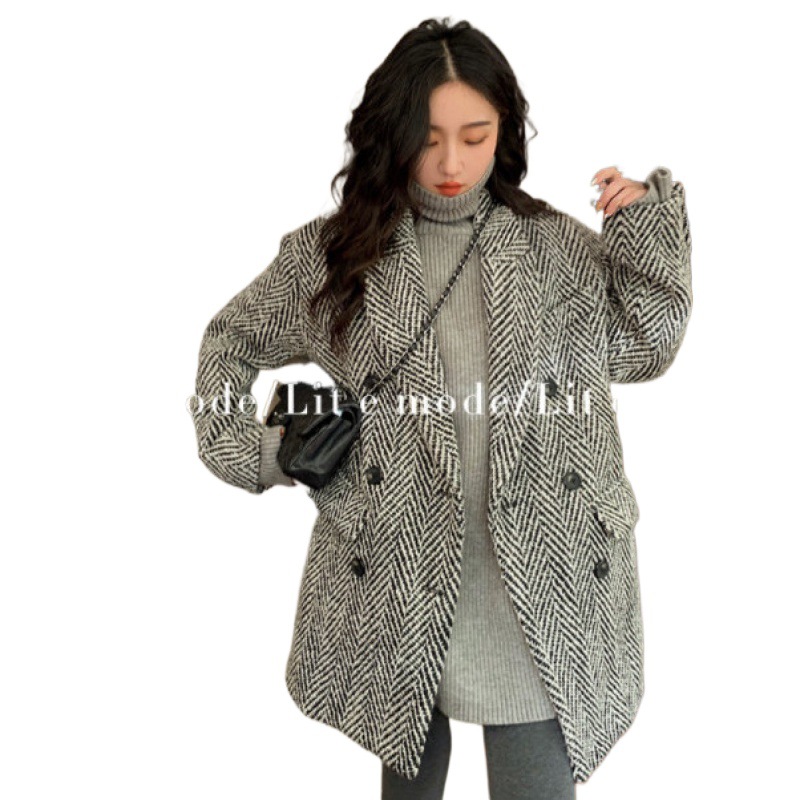 | nameOriginal | Herringbone pattern coat Women's Mid-length 2023 new autumn and winter elegant small suit collar woolen coat women's clothing |
