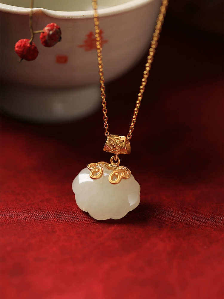 | nameOriginal | Hetian jade ancient gold inlaid female koi pendant necklace |