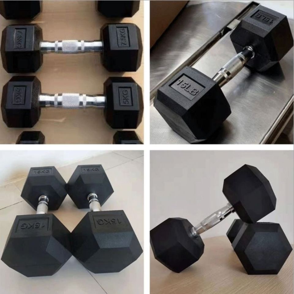 Hexagon dumbbell home fitness equipment 2.5-50kg plastic pure iron gym fixed dumbbell factory direct sales