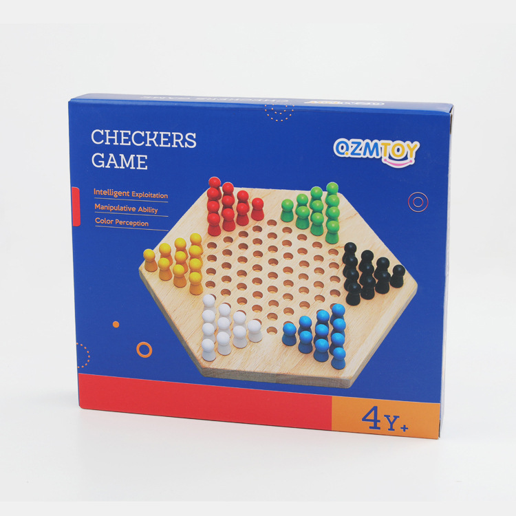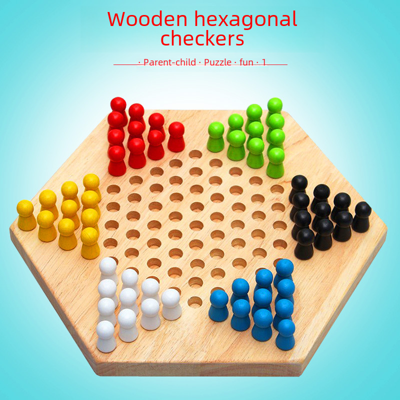 Hexagonal children's checkers Boys and Girls Primary School students parent-child chess game wooden checkers board game educational toys