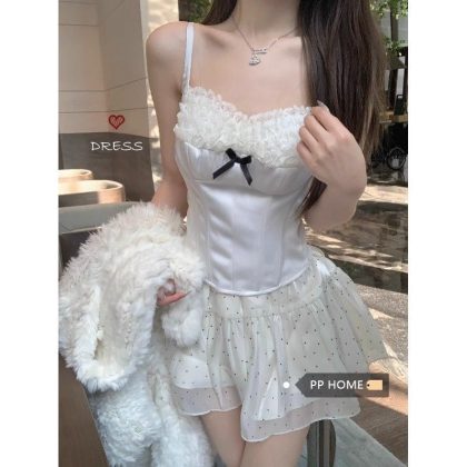 hf lace stitching waist white strap puffy skirt ballet princess set