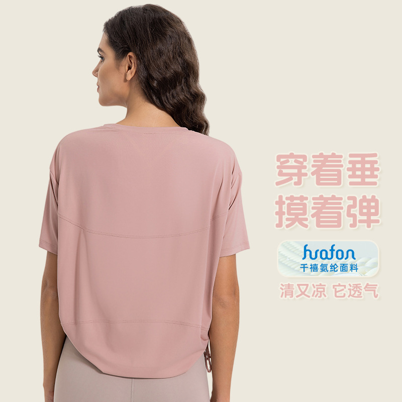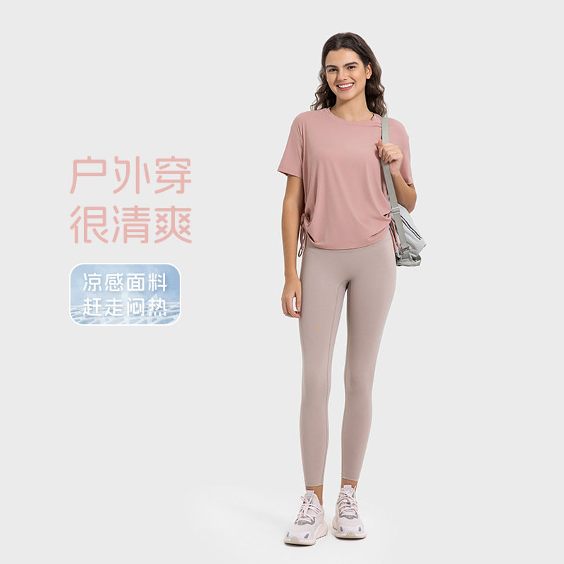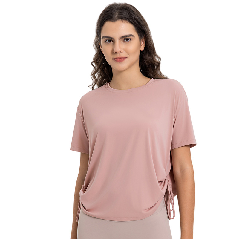HF Millennium New Cool Breathable Quick-drying Drawstring Pleated TEE Loose Comfortable Round Neck Outdoor Sports Short Sleeve