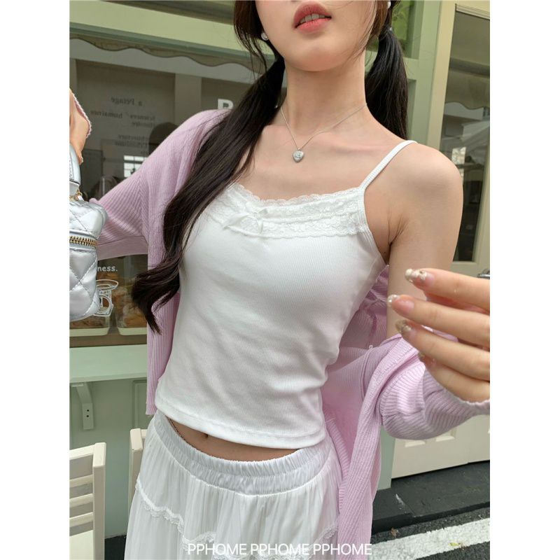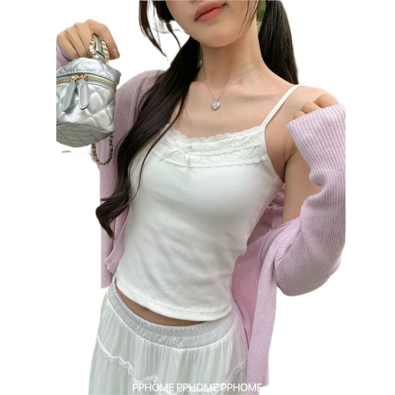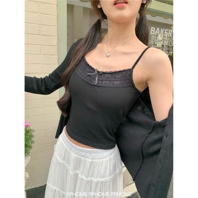 hf pure lace gray camisole women with chest pad inside and outside with short slim design sense niche top