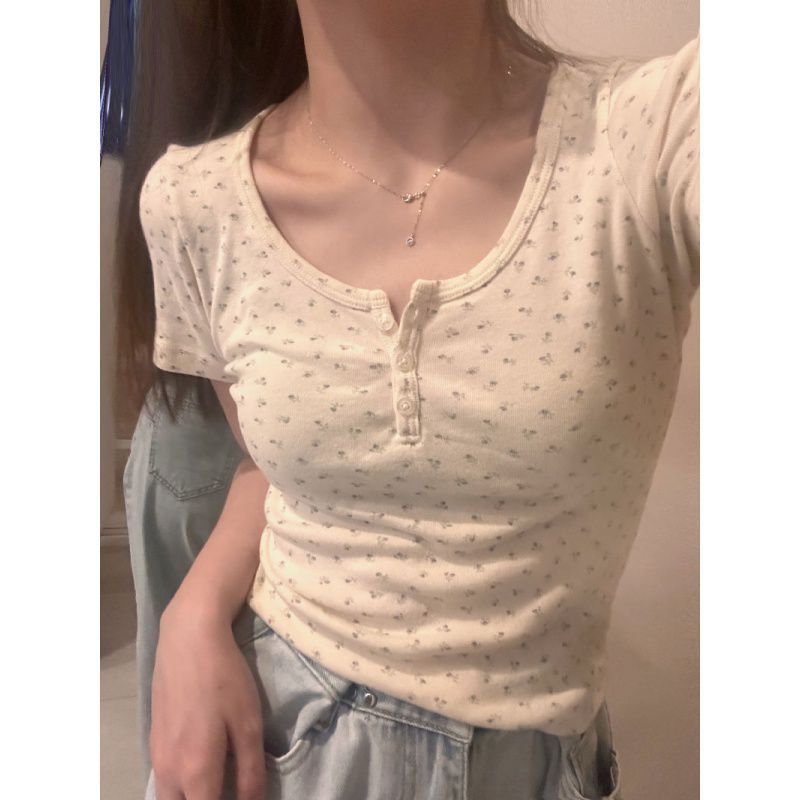 | nameOriginal | Hfu Collar Floral Short Sleeve Shoulder Short Top Women's Summer 2024 New Slim-fit Design Sense Niche All-match T |