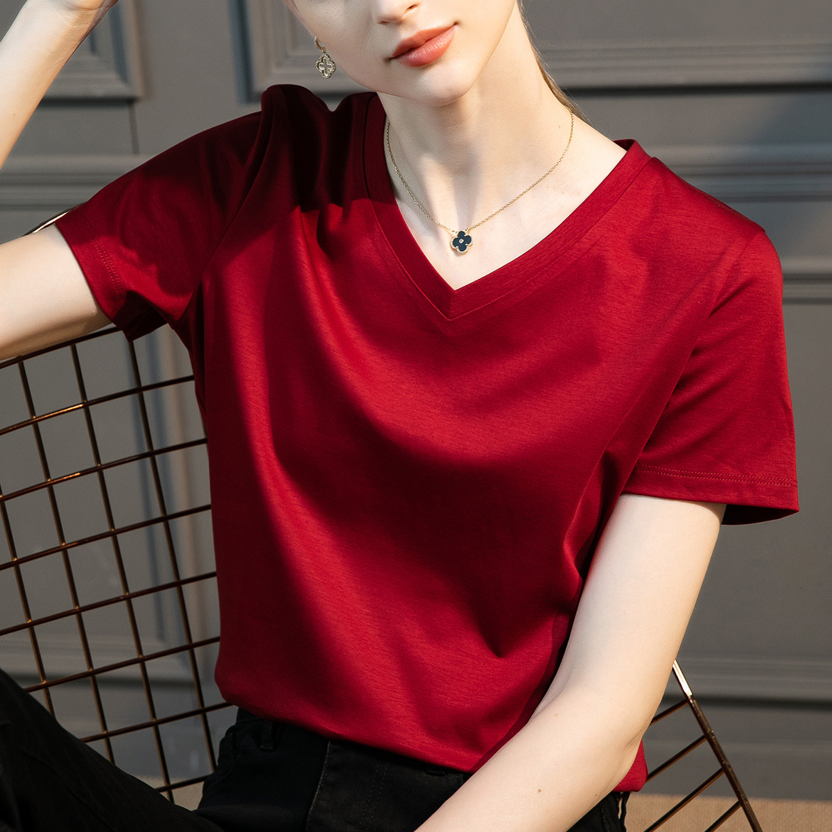 | nameOriginal | High 80 double-sided mercerized cotton short-sleeved white T-shirt women's summer women's loose crew neck V-neck versatile T-shirt 1688 |
