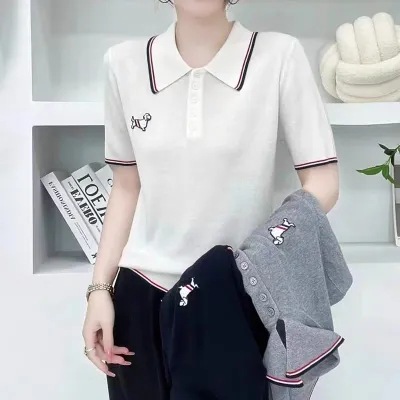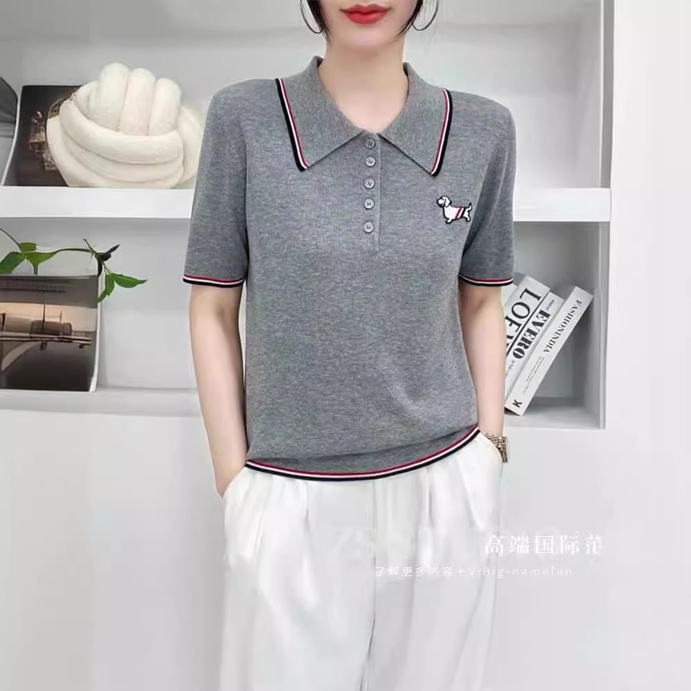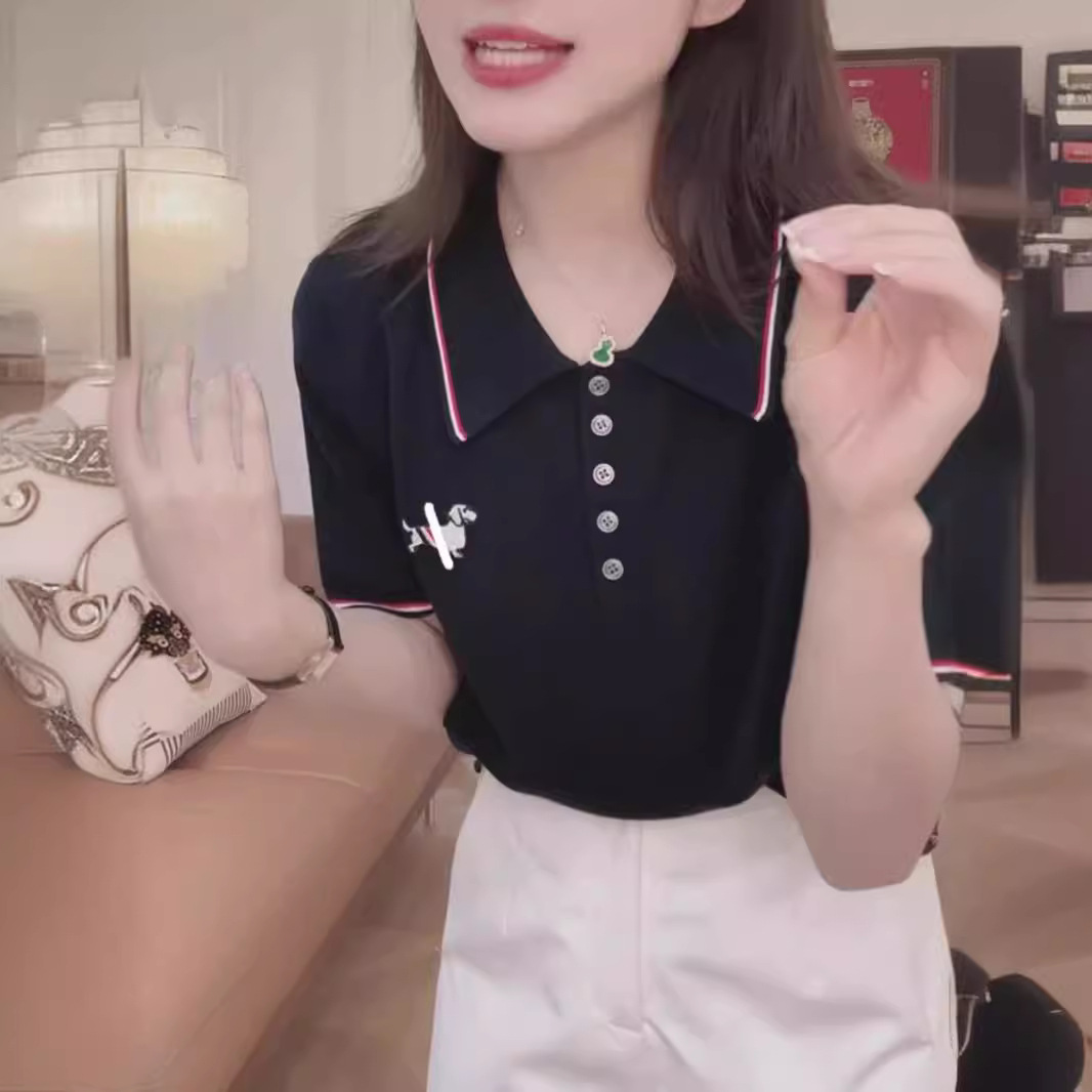| nameOriginal | High-class super good-looking puppy embroidered polo collar color matching sweater temperament casual summer short sleeve fashionable top women |