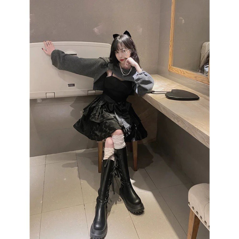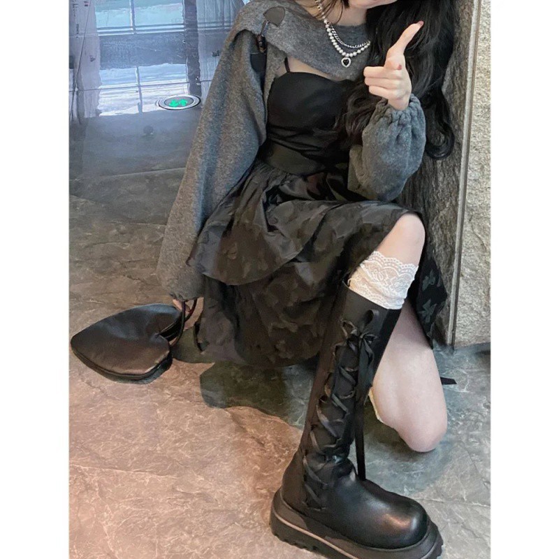 | nameOriginal | High Cold Sling dress Shirt Cover Two-Piece Set Dark Spring and Autumn Niche Design Black Hot Girl Fashionable suit Women |