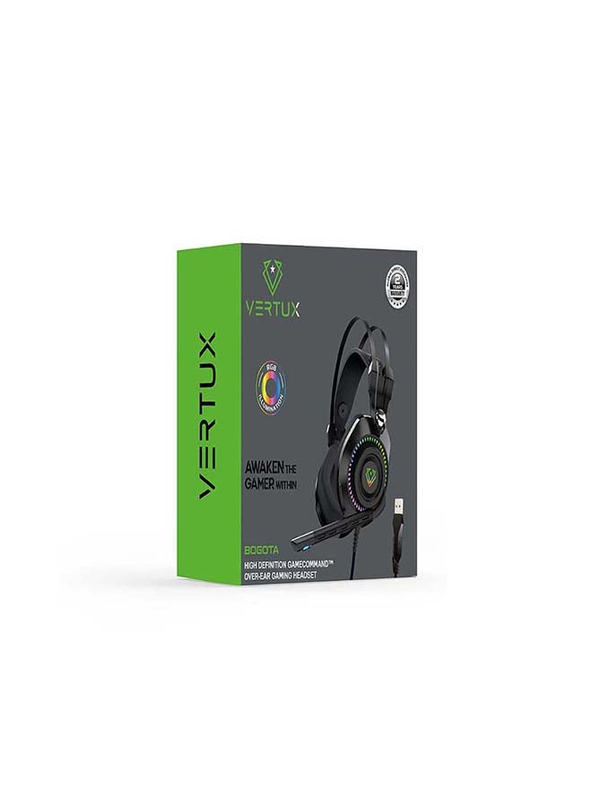 Introducing the VERTUX BOGOTA HIGH DEFINITION AUDIO GAMING HEADSET in sleek black color. This headset is designed to provide an immersive gaming experience with its high definition audio quality. It is compatible with PC games and comes with a model name and number for easy identification. Upgrade your gaming setup with the VERTUX BOGOTA HIGH DEFINITION AUDIO GAMING HEADSET.