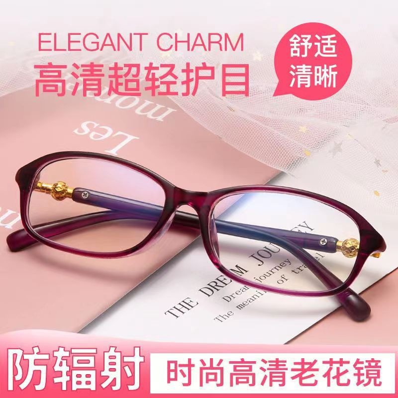 High-definition reading glasses for middle-aged and elderly high-end women's fashion ultra-light blue-ray radiation-proof reading glasses for the elderly
