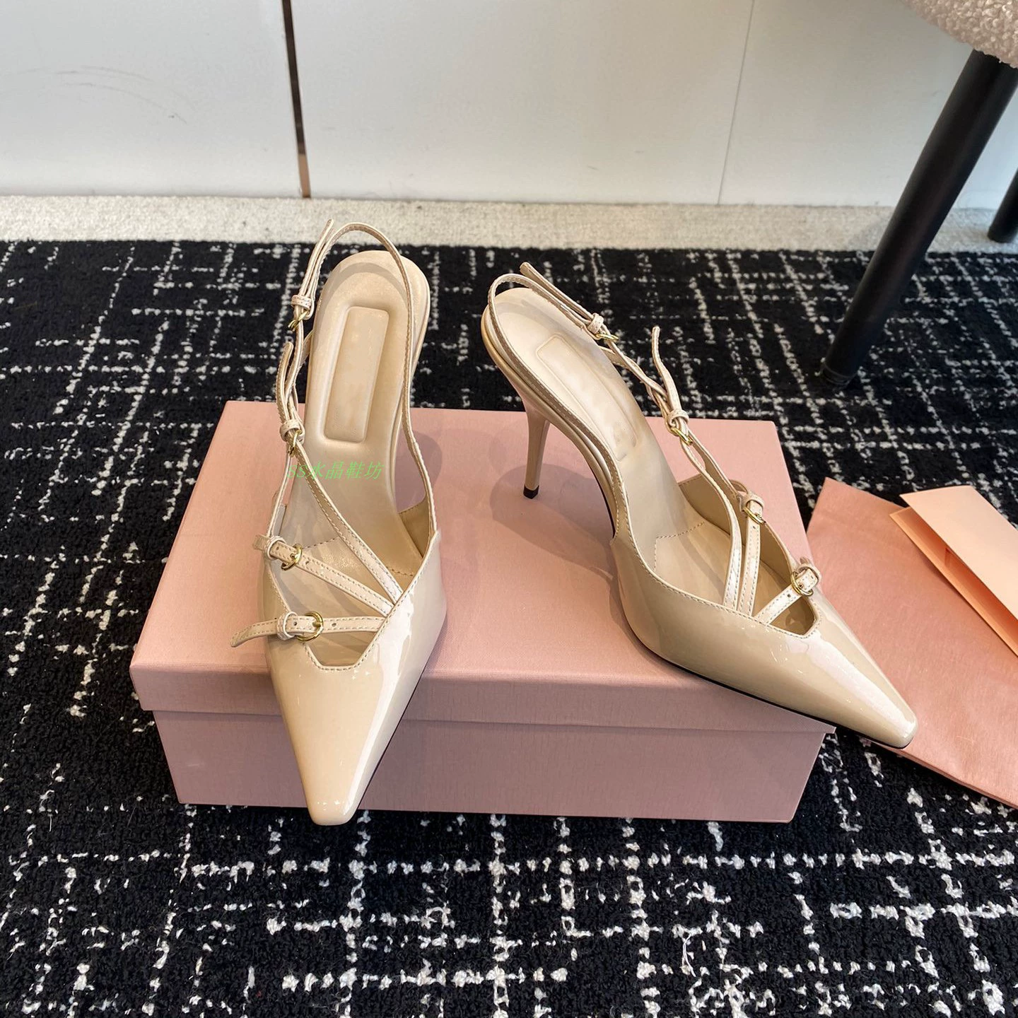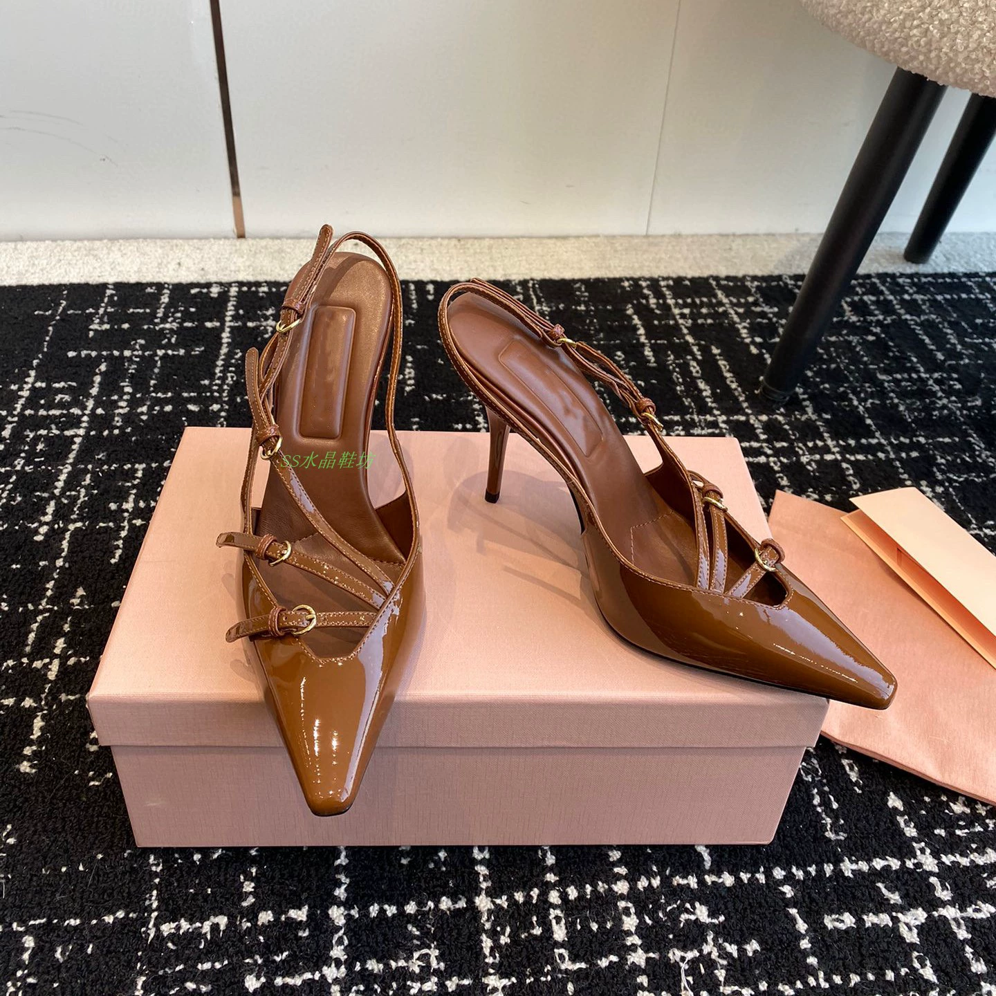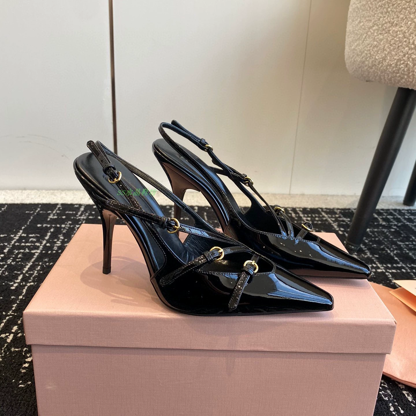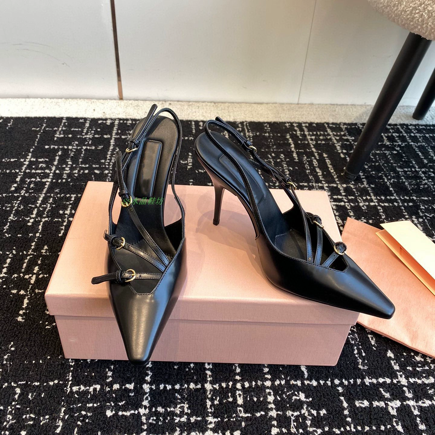 High-definition stiletto heel with stylish back strap and side hollow metal buckle