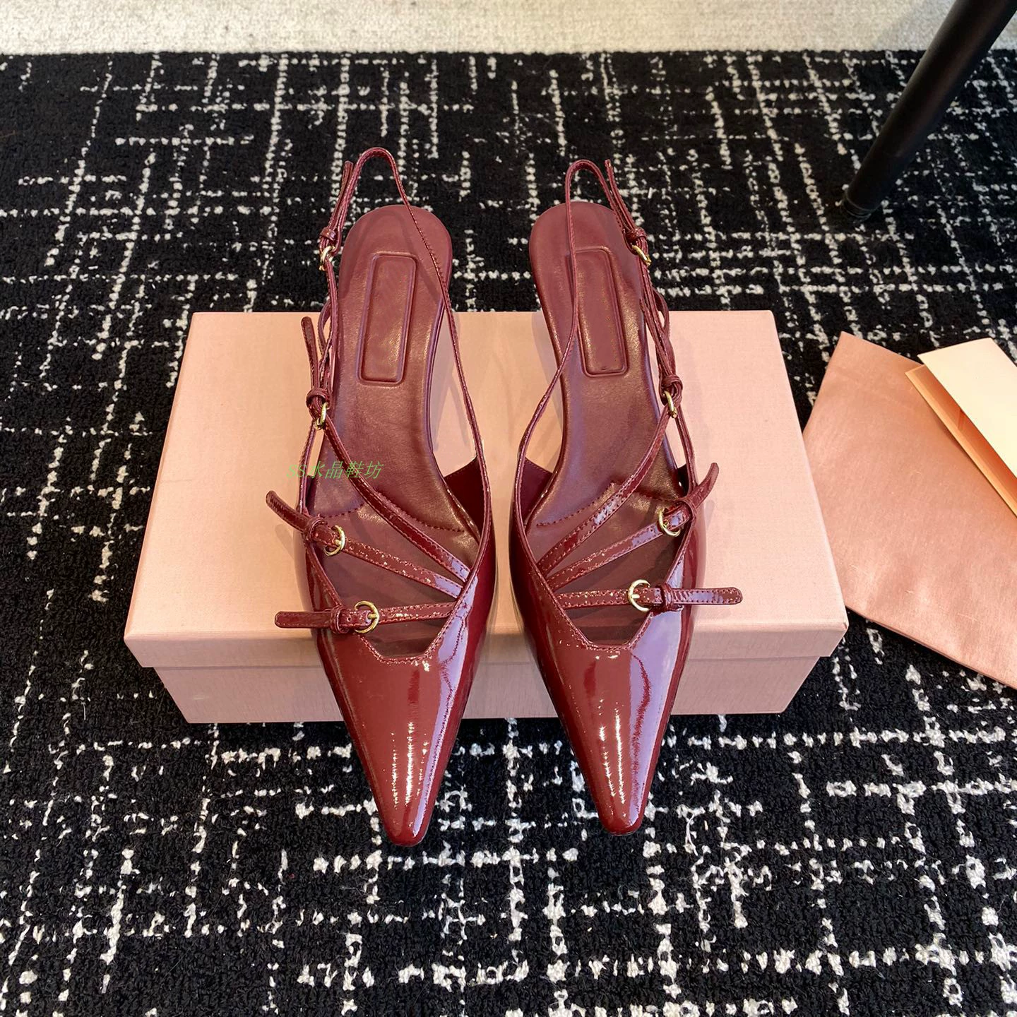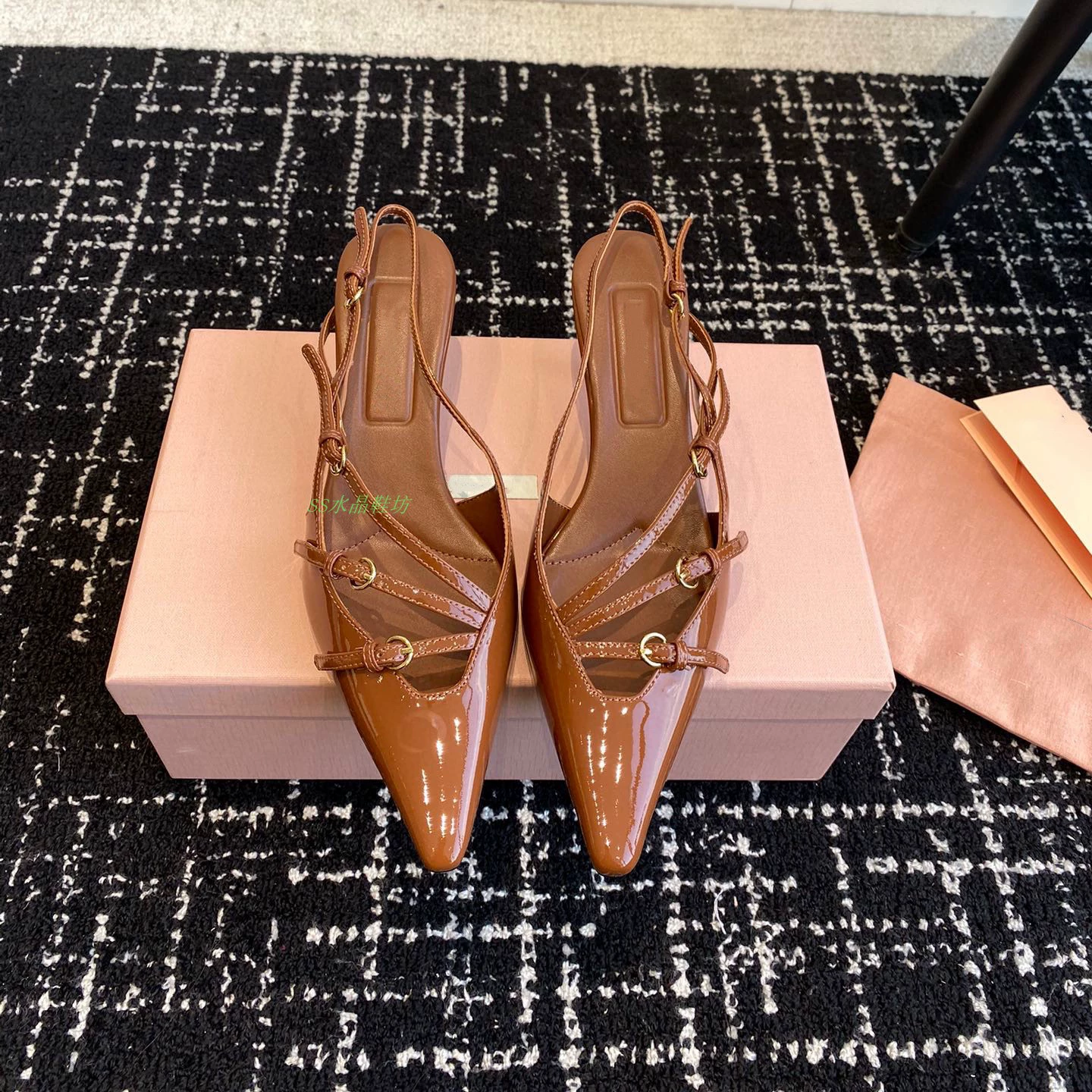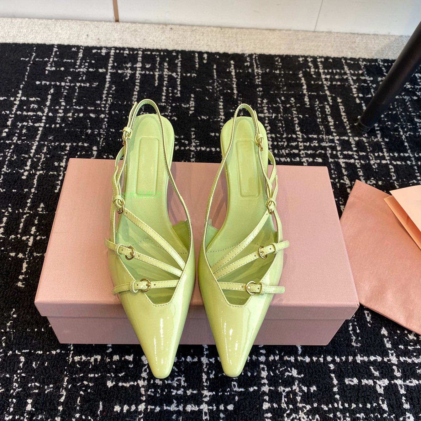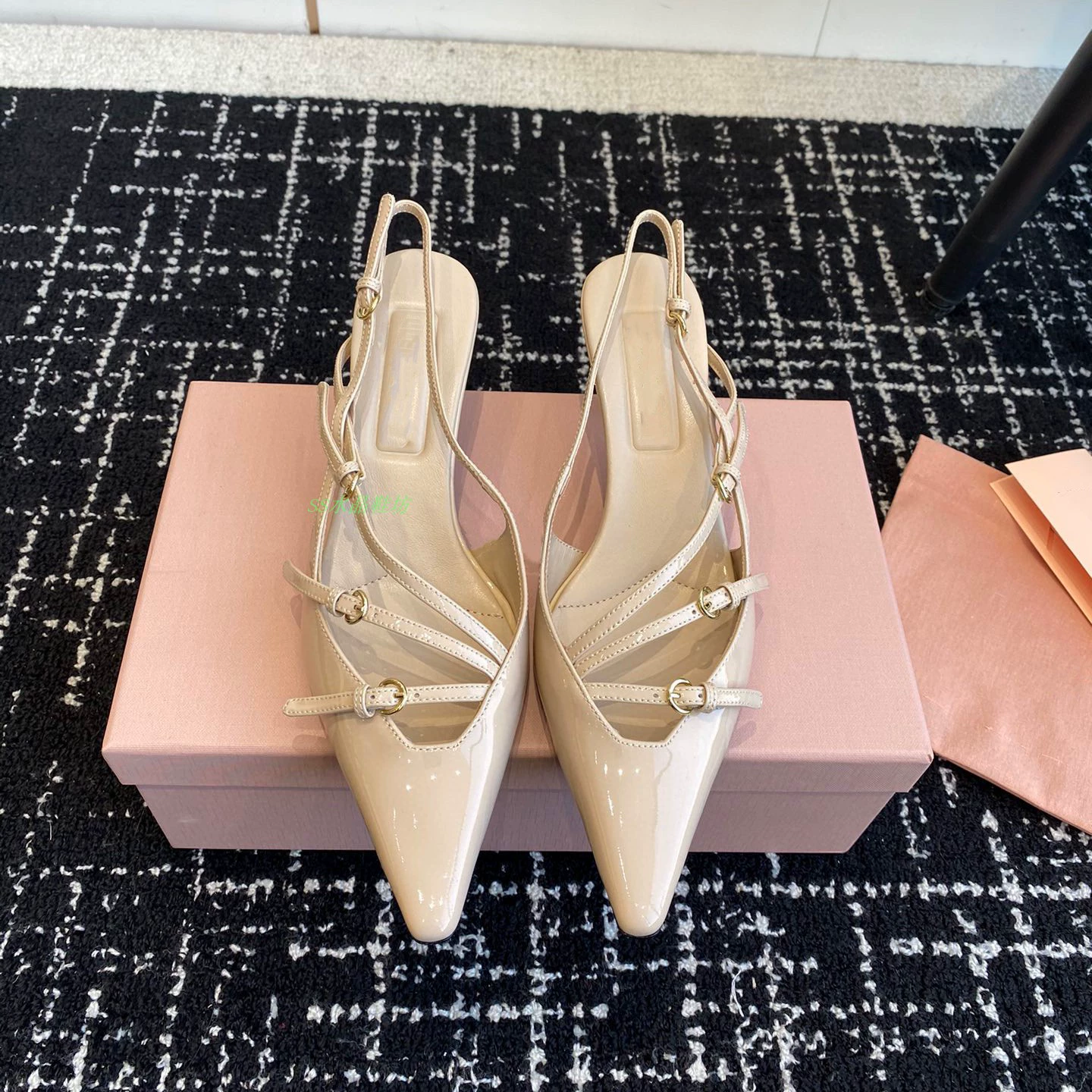 High-definition stiletto heel with stylish back strap and side hollow metal buckle