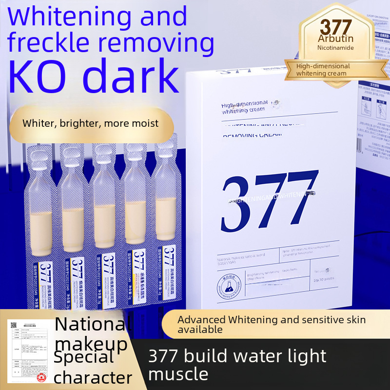 | nameOriginal | High-dimensional whitening freckle removing cream 377 times polishing whitening essence anti-early aging hydrating moisturizing whitening light spot removing yellow brightening |