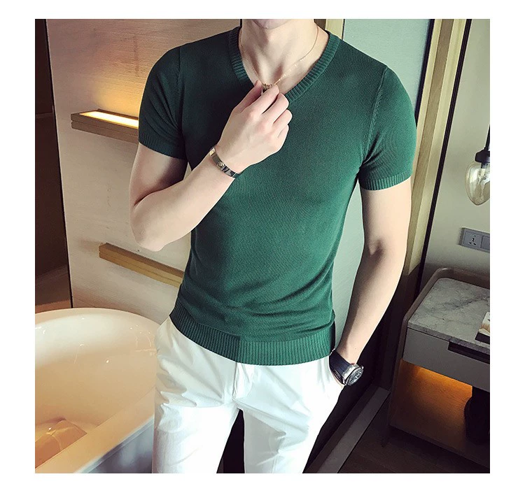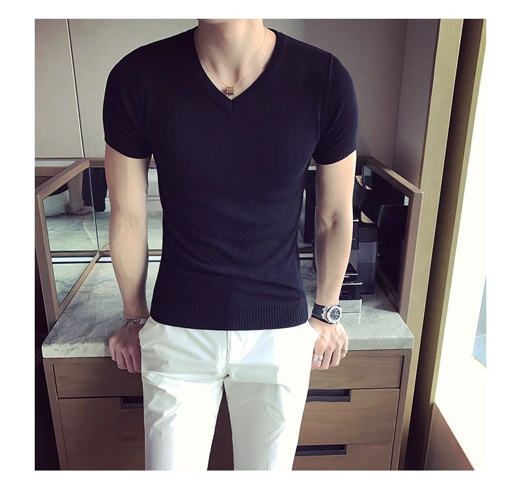| nameOriginal | High elastic collar solid color sweater short sleeve sweater |