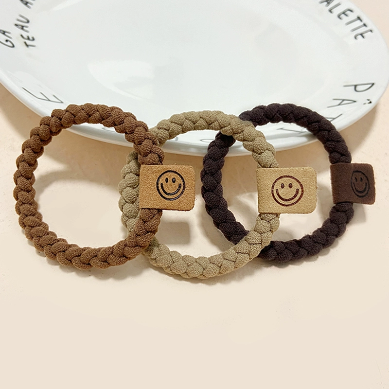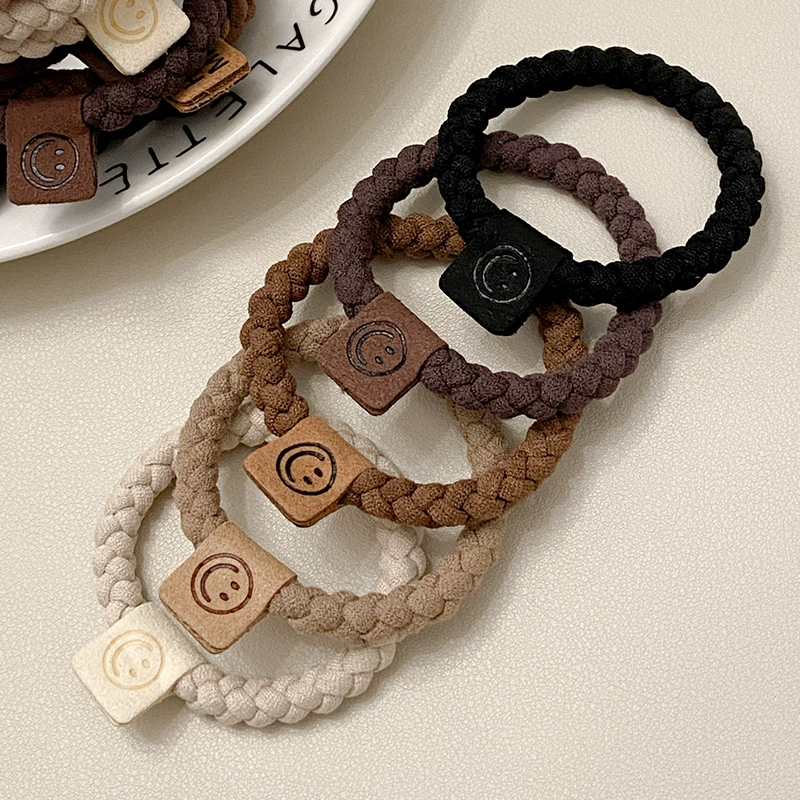 High elasticity thick smiley face hair tie ~ 2024 new hair rope Korean leather case for women simple temperament ponytail rubber band