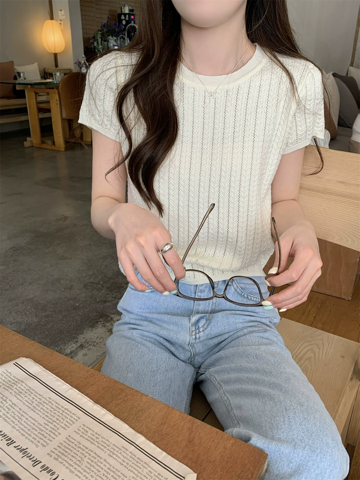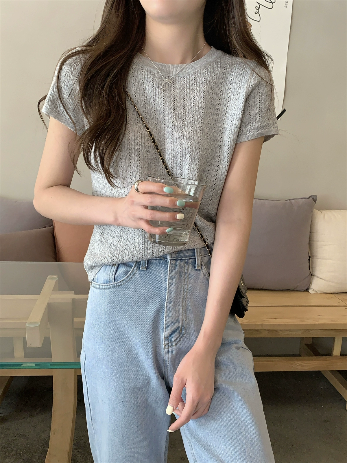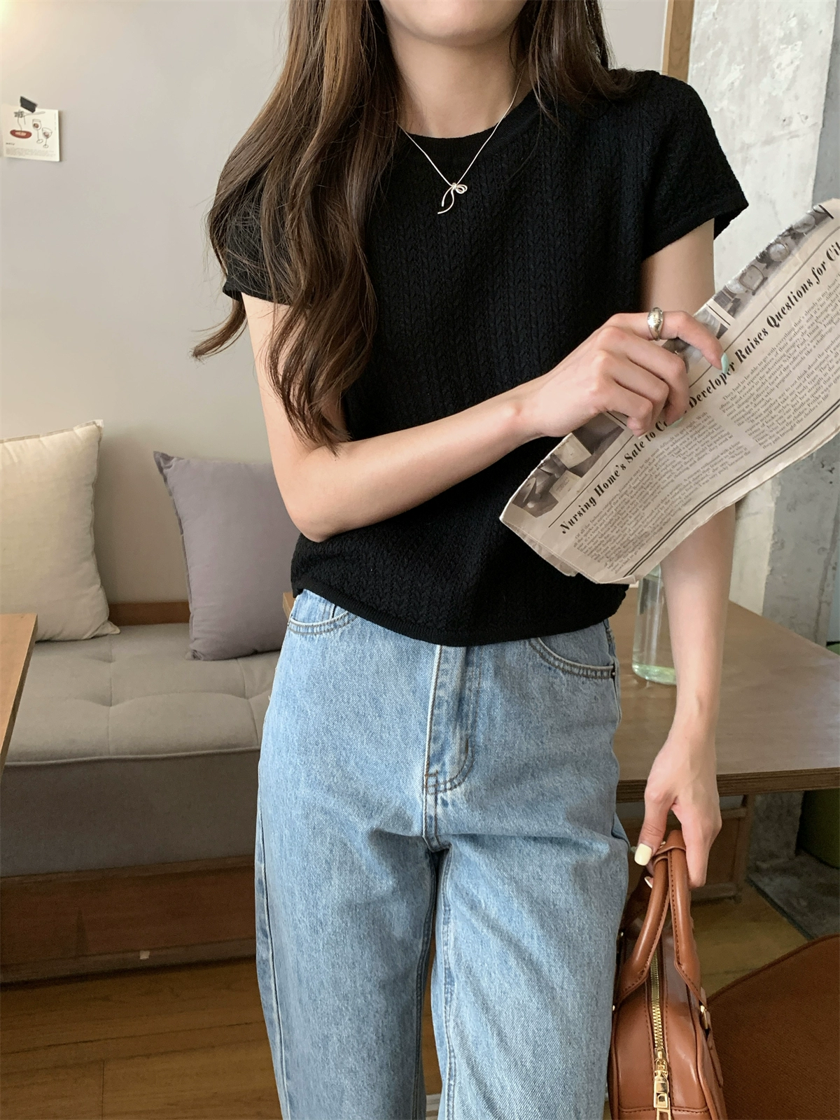 High-end and slim Korean style round neck twist top