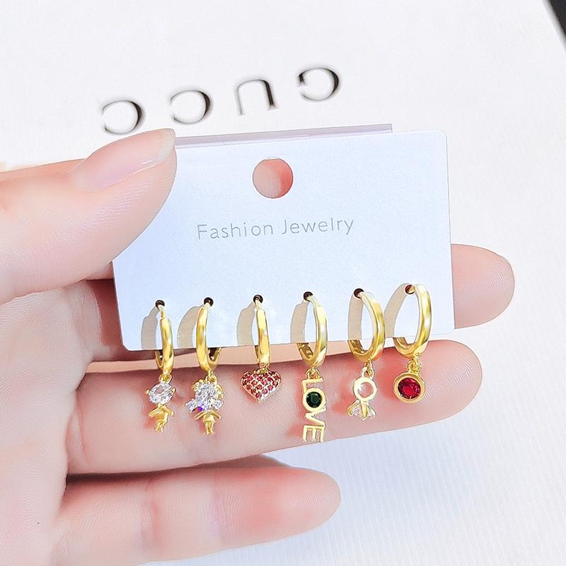 High-end and temperamental girl earrings for women, six-piece set LOVE ear buckles, Internet celebrity ear rings, simple love earrings, trendy