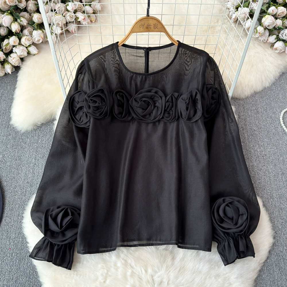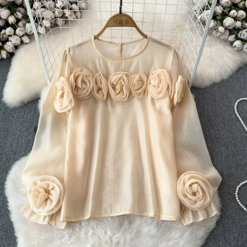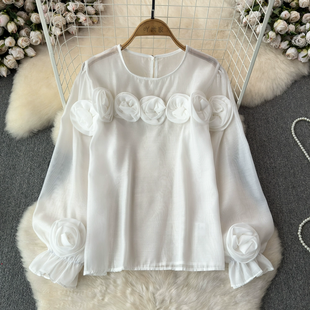 | nameOriginal | High-end and versatile 2024 spring and autumn niche three-dimensional flower French shirt women's European style new loose round neck top |