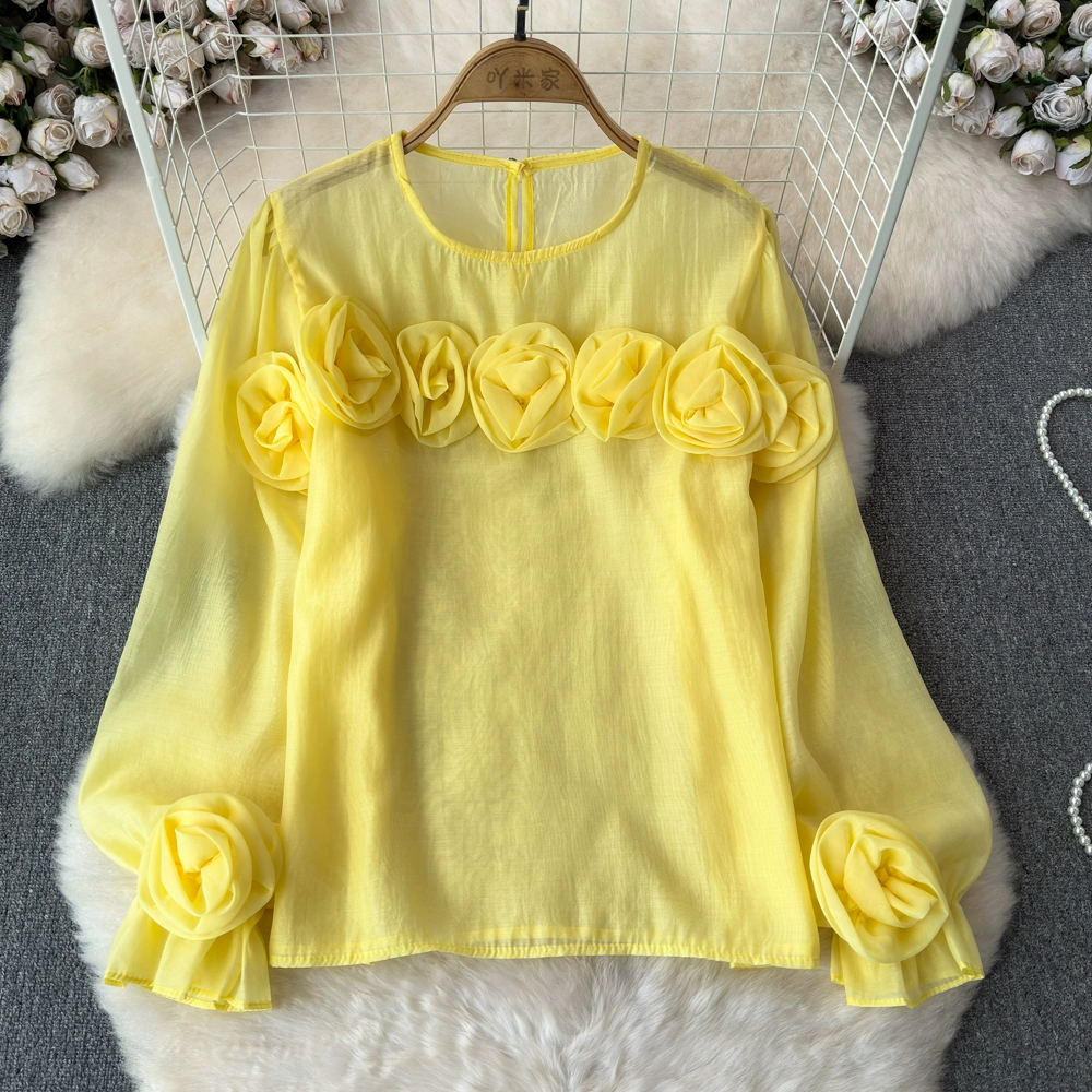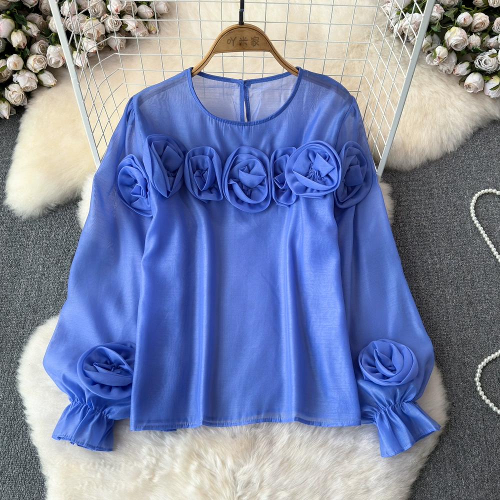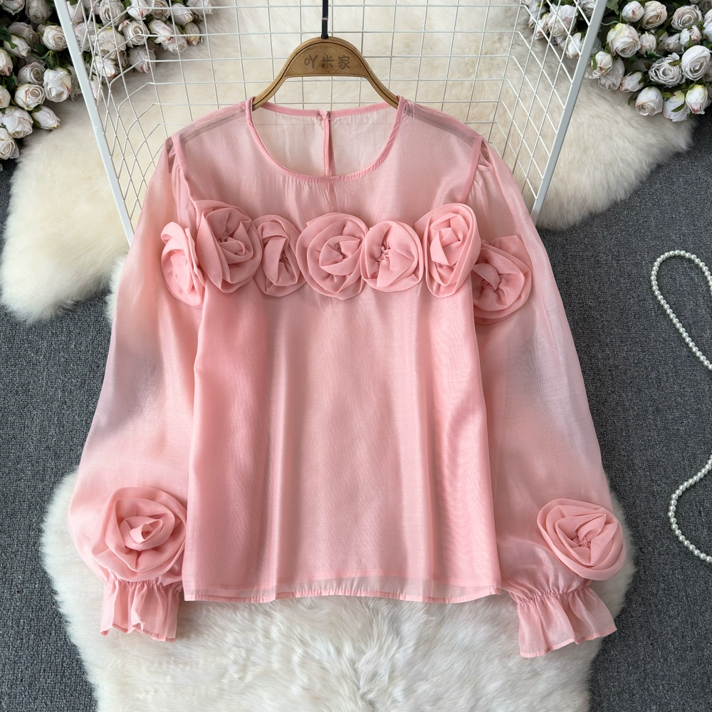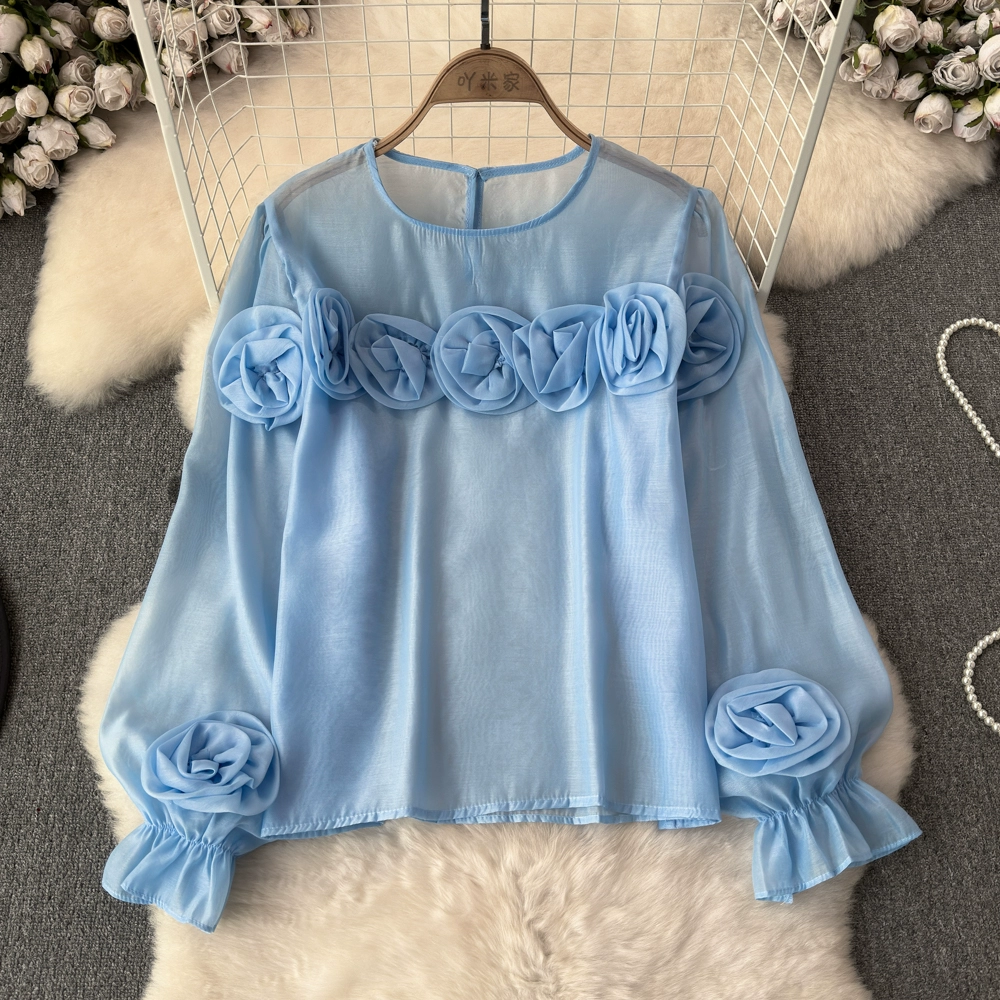 | nameOriginal | High-end and versatile 2024 spring and autumn niche three-dimensional flower French shirt women's European style new loose round neck top |