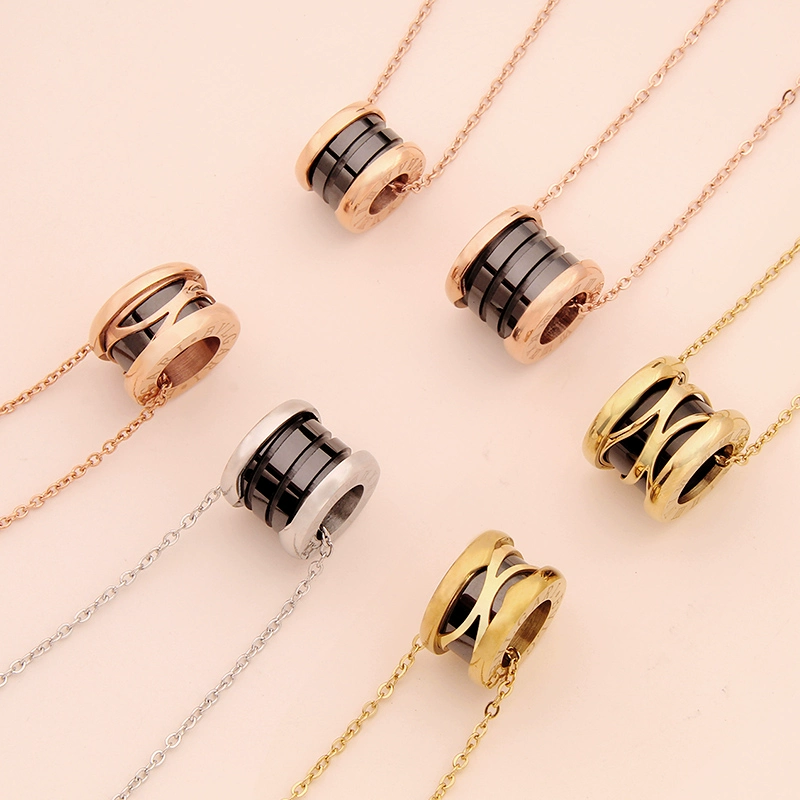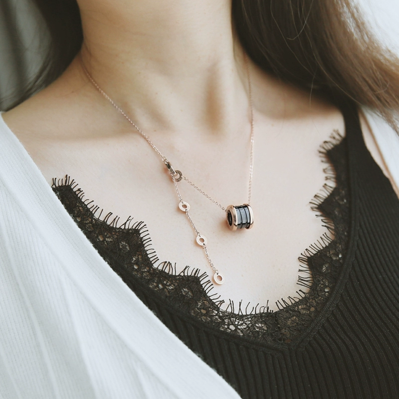 | nameOriginal | High-end black ceramic necklace for women, titanium steel, non-fading, little celebrity spring, simple pendant, rose gold extended chain, trendy |