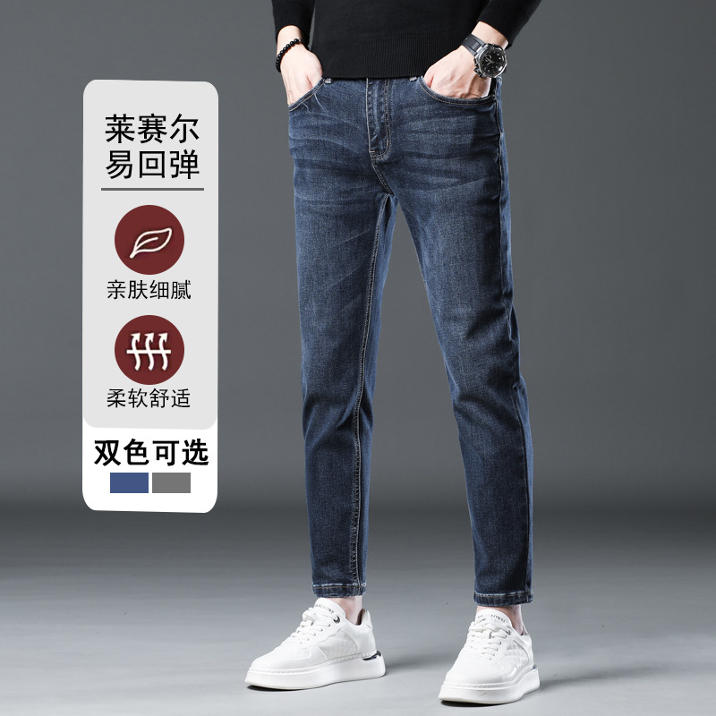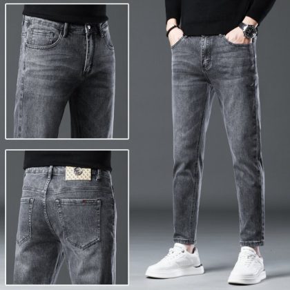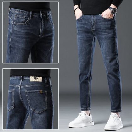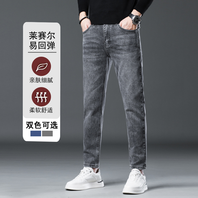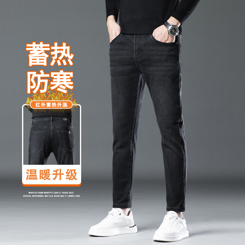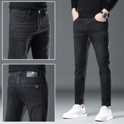 | nameOriginal | High-end black trendy cropped jeans men's 2023 autumn and winter New slim fit skinny pants men's all-match long pants |