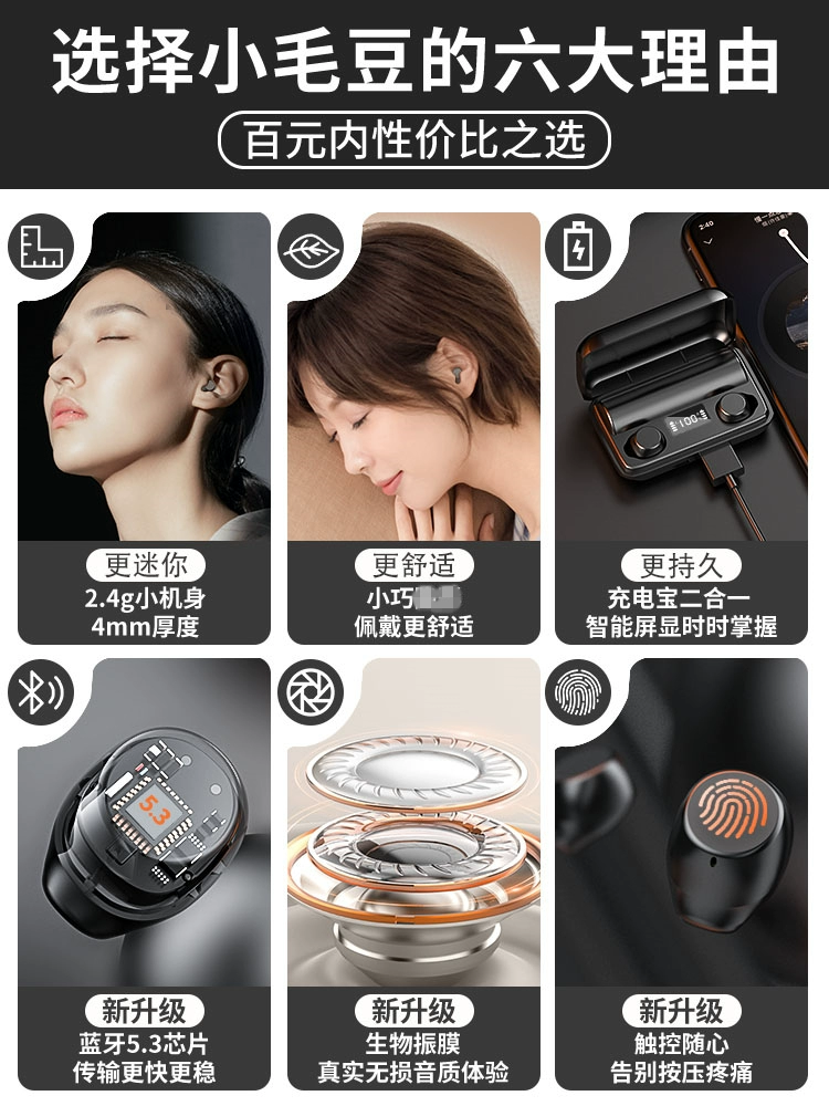 High-end Bluetooth headset 2023 new true wireless binaural in-ear plugs for men and women, universal Android mobile phone