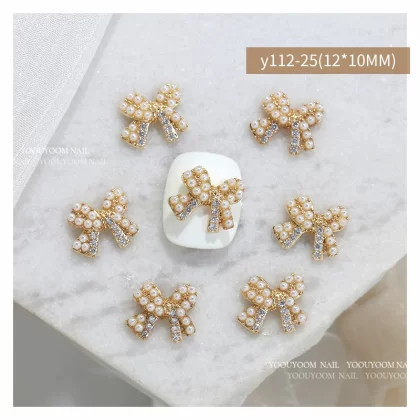 High-end bow nail art zircon jewelry internet celebrity popular style pearl full diamond light luxury accessories nail decorative diamond