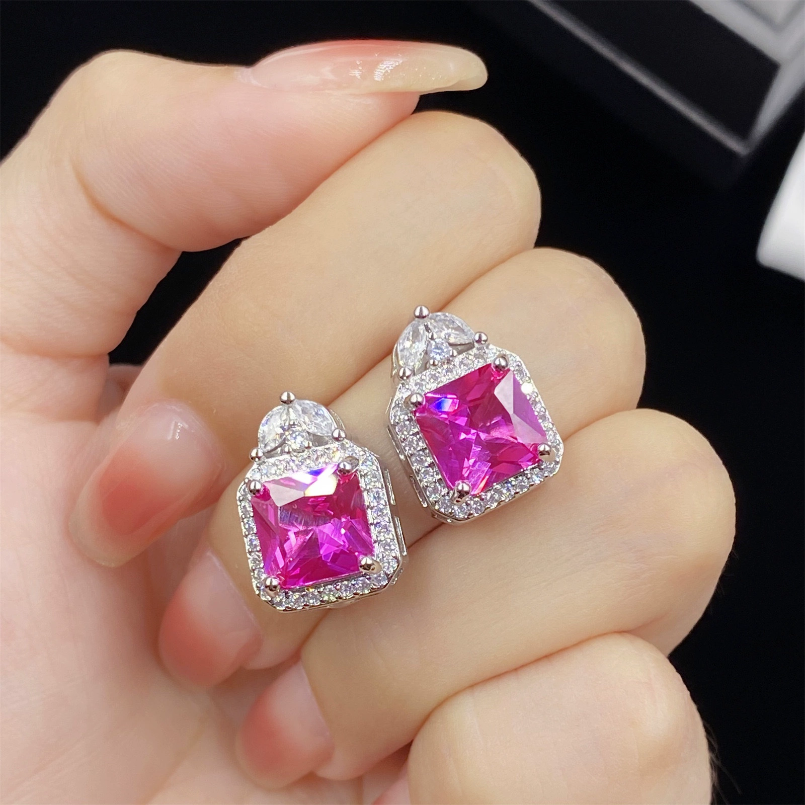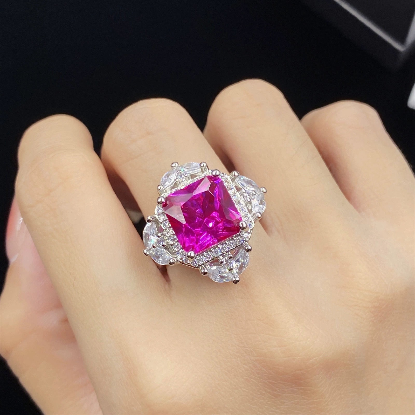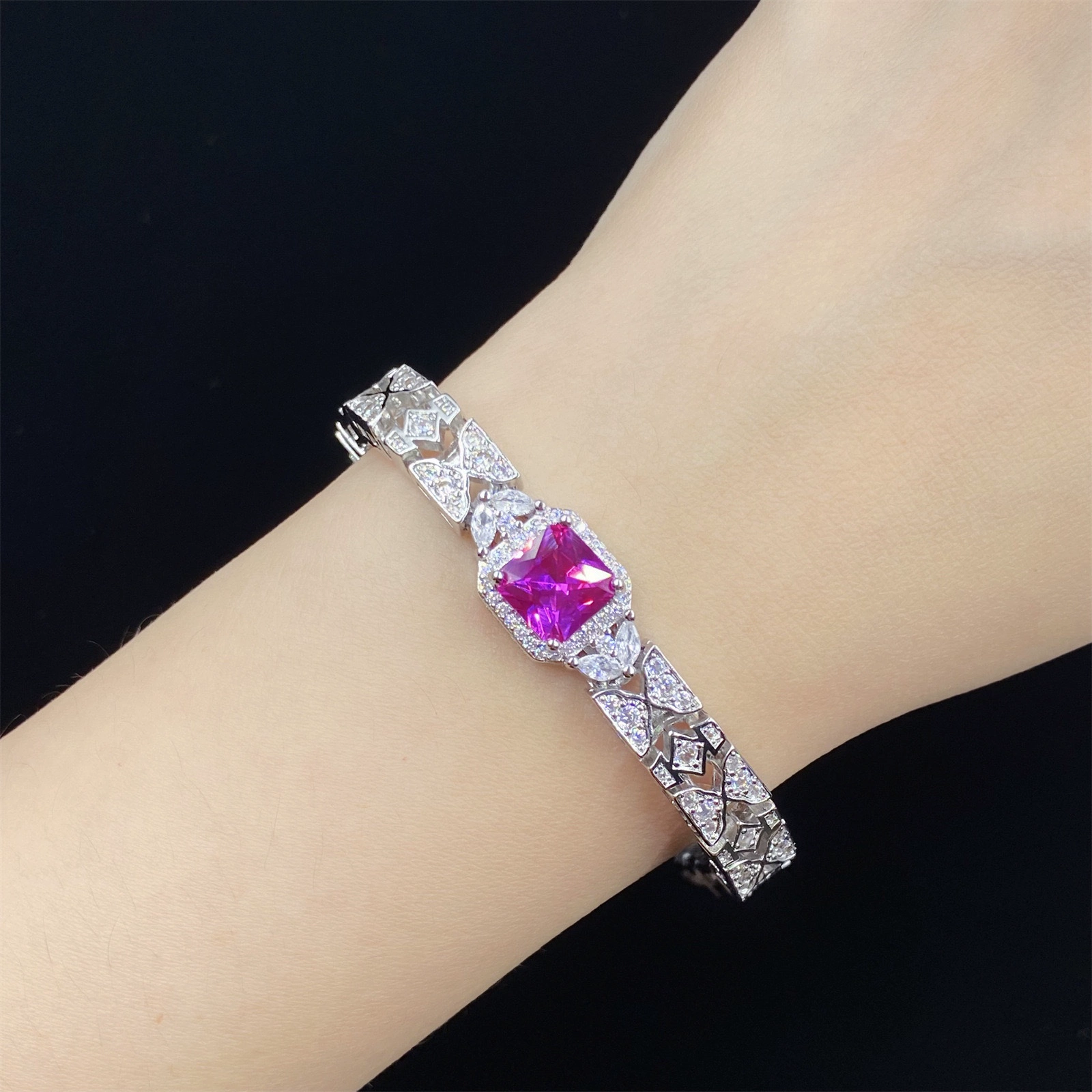 | nameOriginal | High-end celebrity style imitation red corundum full of diamonds four-piece set princess open ring female pendant earrings bracelet set |