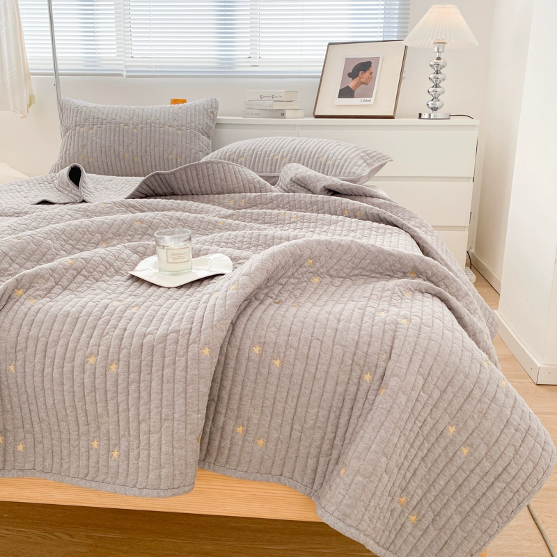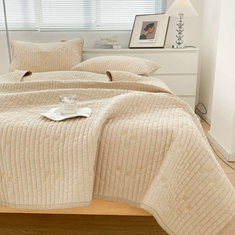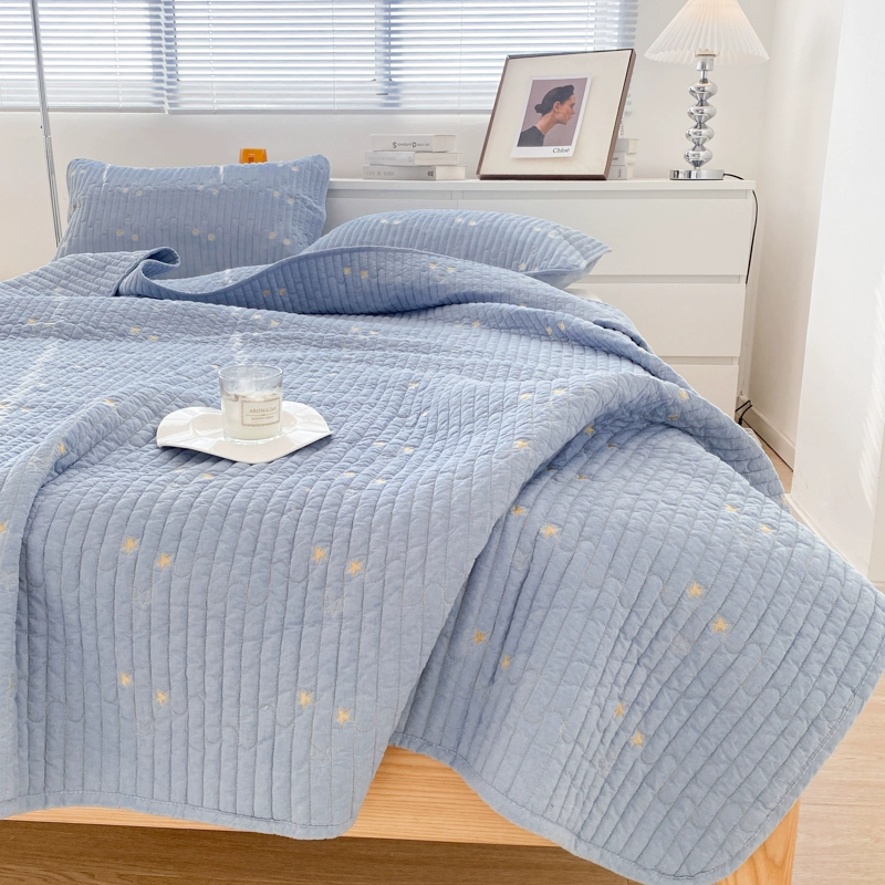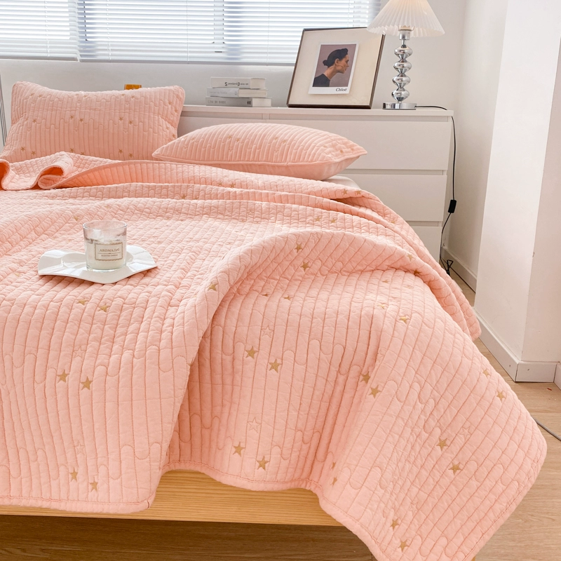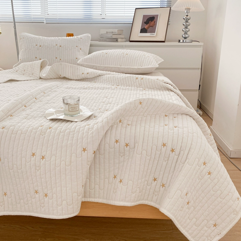 High-end Class A cotton yarn-dyed washed cotton bed cover embroidered solid color quilted quilted simple pure cotton thickened bed sheet