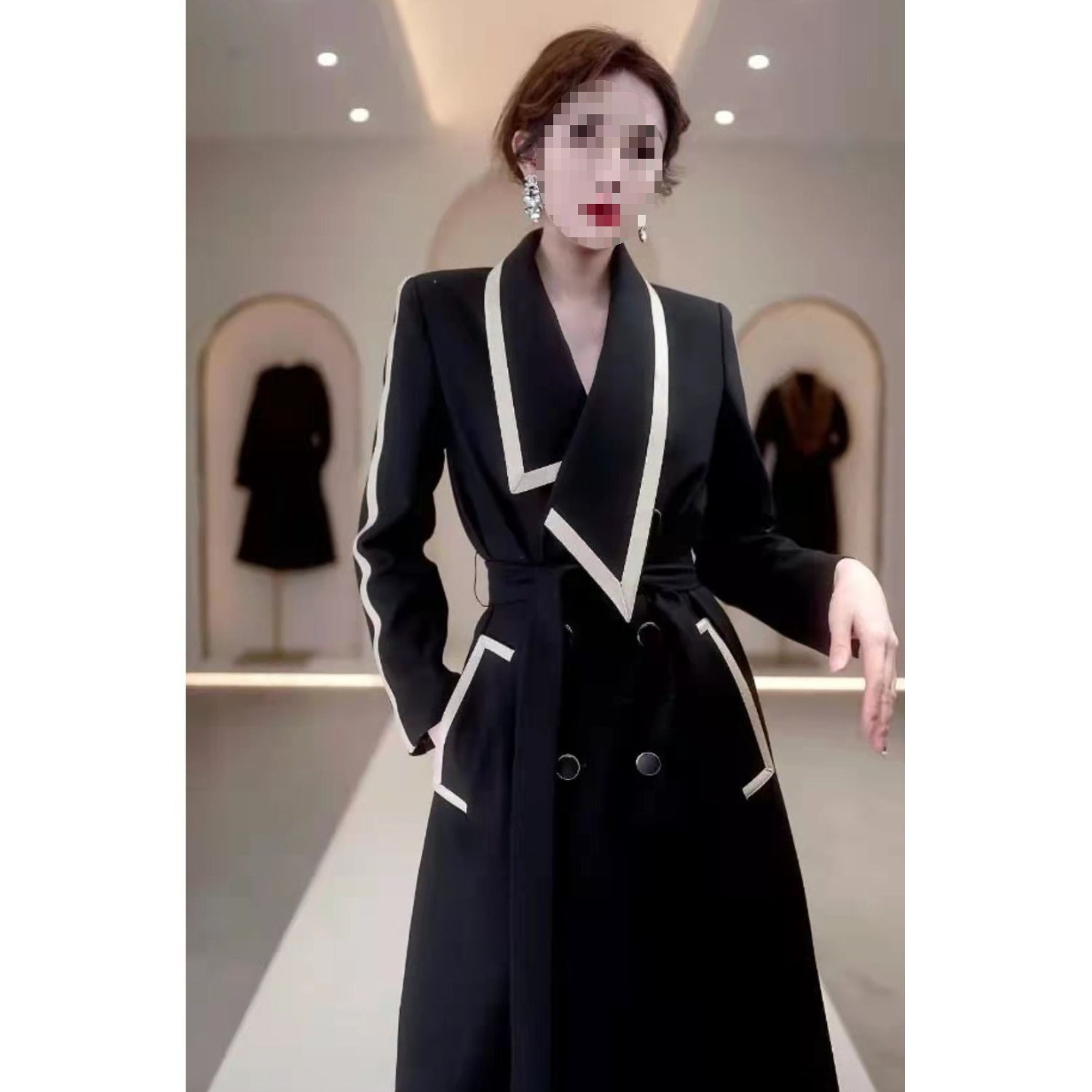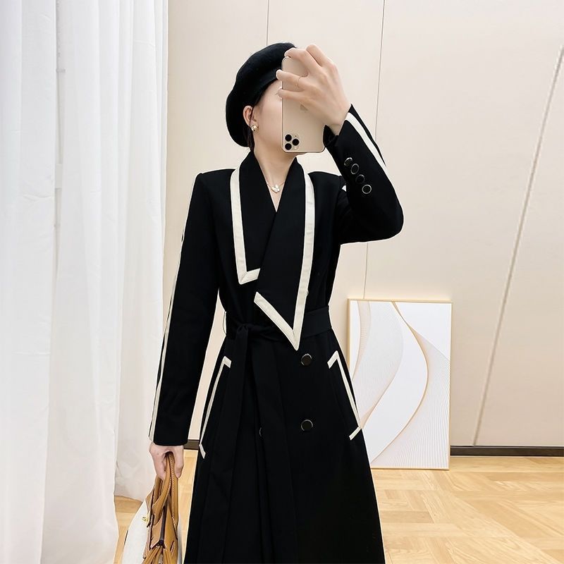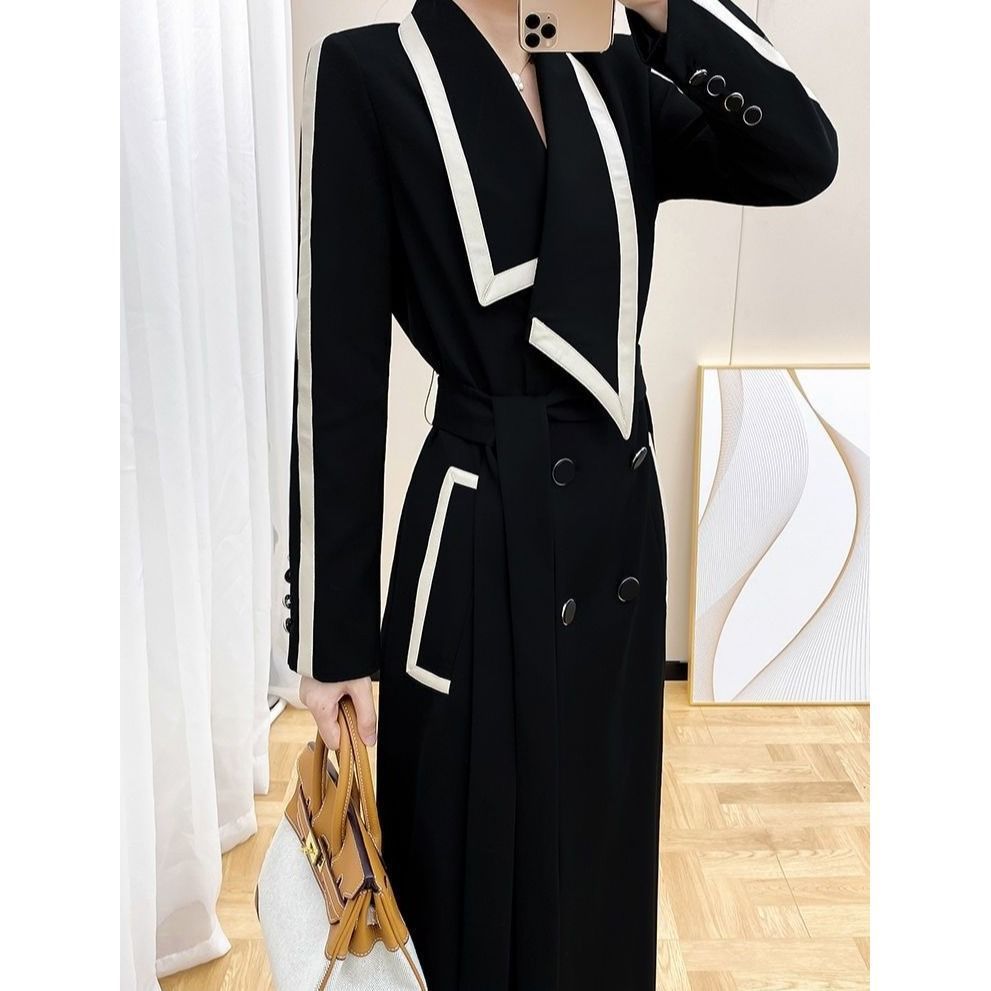 High-end Coat 2022 Spring and Autumn New Fashion Elegant Color Contrast Commuter Hepburn Style Coat Women’s Long Coat