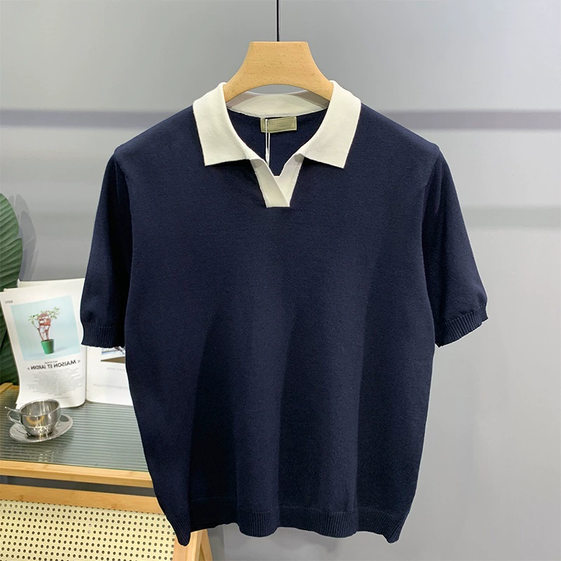 | nameOriginal | High-end color-blocked V-neck summer knitted short-sleeved Polo shirt |
