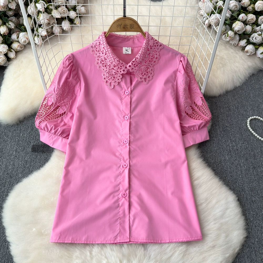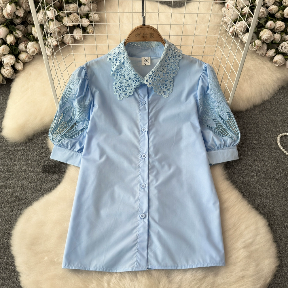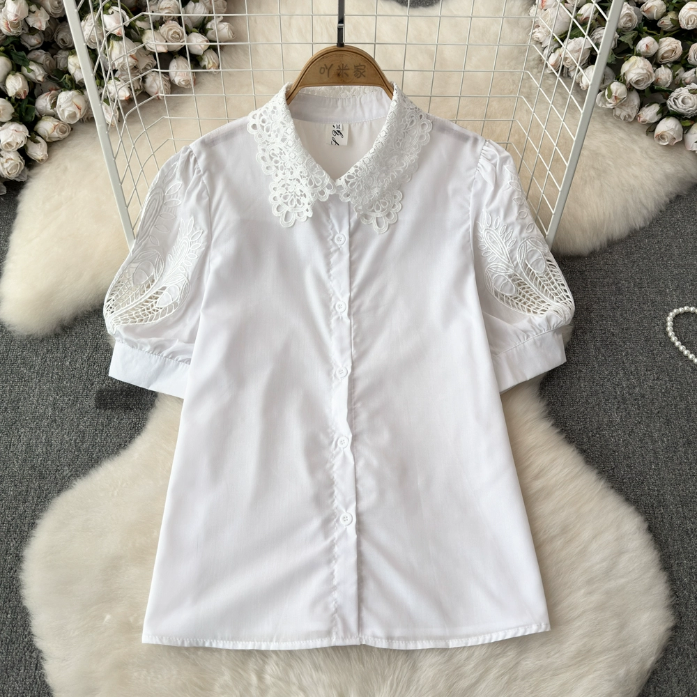 | nameOriginal | High-end craftsmanship lace collar short-sleeved shirt women's embroidered hollow puff sleeve white shirt stunning top |