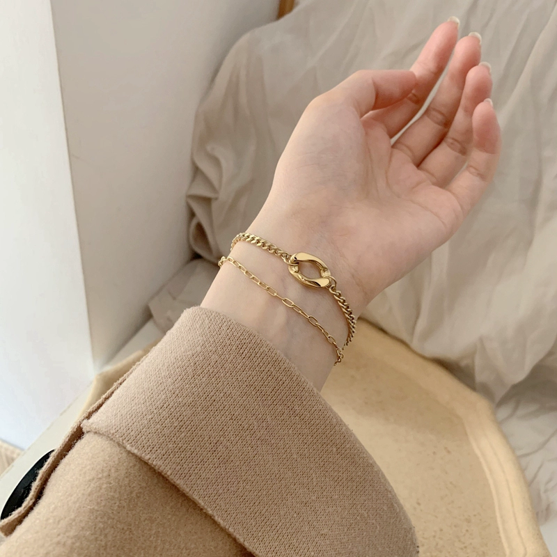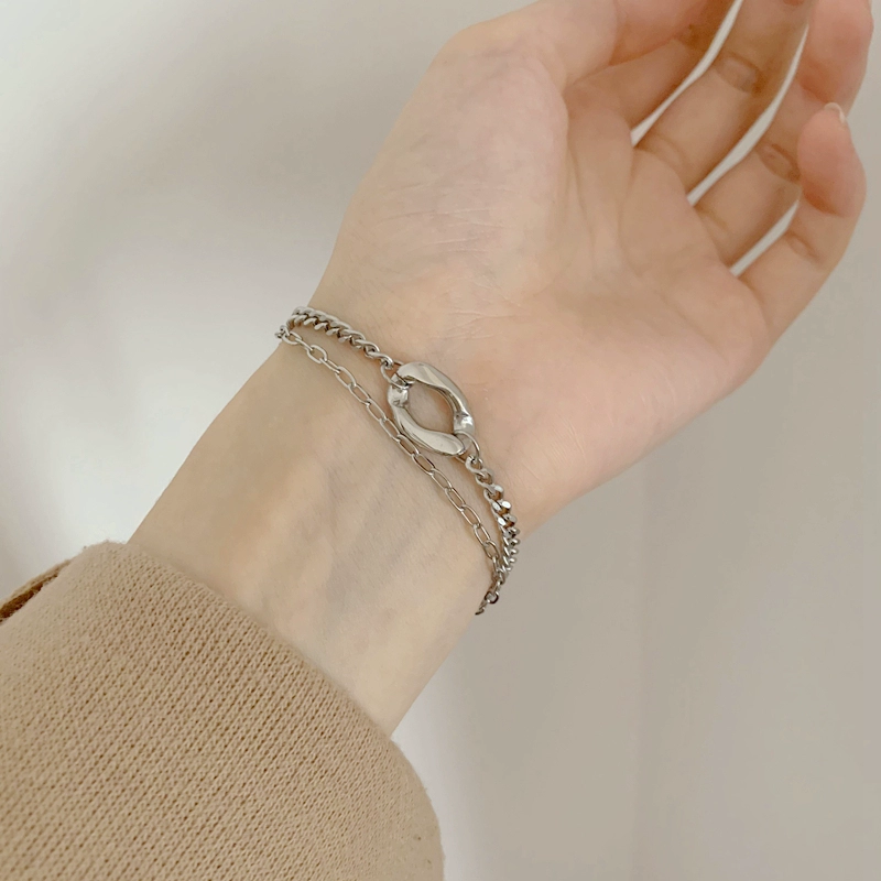 | nameOriginal | High-end Cuban chain titanium steel splicing bracelet for women double-layer couple temperament ins trendy cool style niche men |