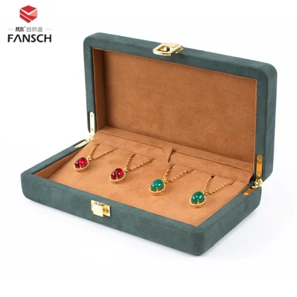 | nameOriginal | High-end dark green microfiber jewelry set box storage box metal buckle ring necklace jewelry tray display props |