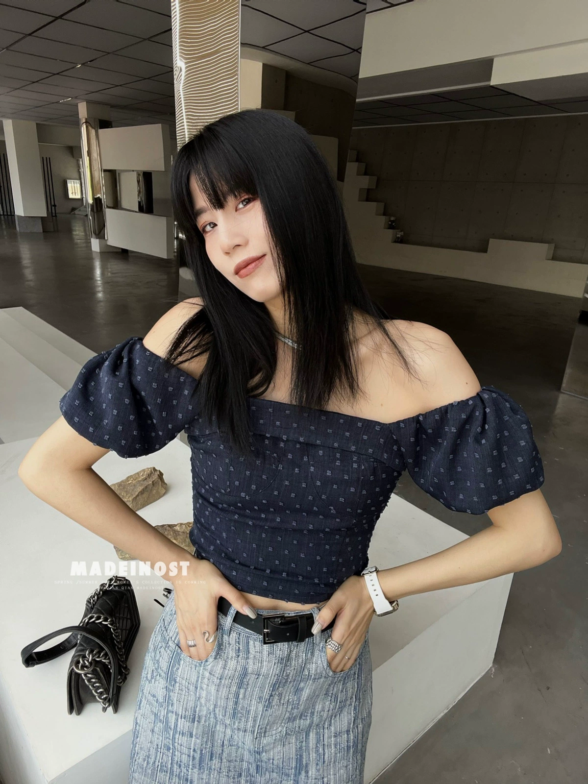 | nameOriginal | High-end distressed jacquard one-neck two-piece top |