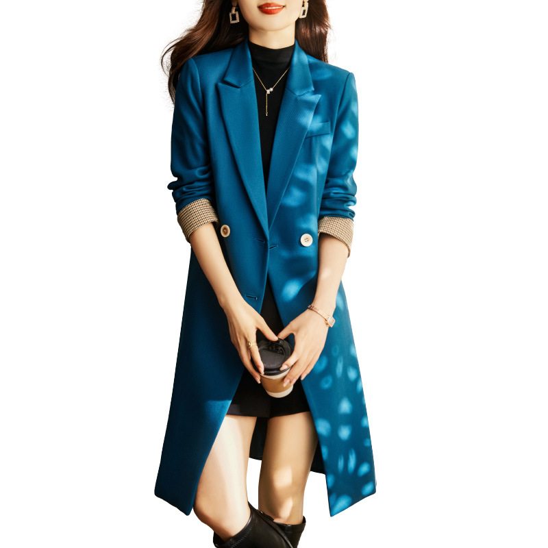 | nameOriginal | High-end double-breasted blue mid-length suit trench coat women's 2022 autumn and winter New Korean suit coat |