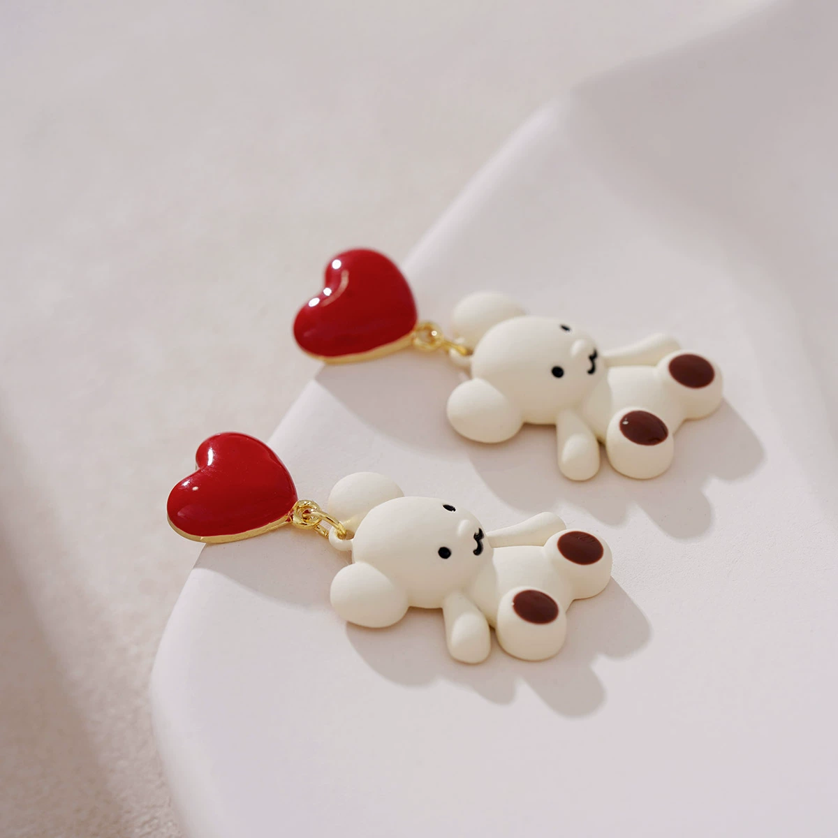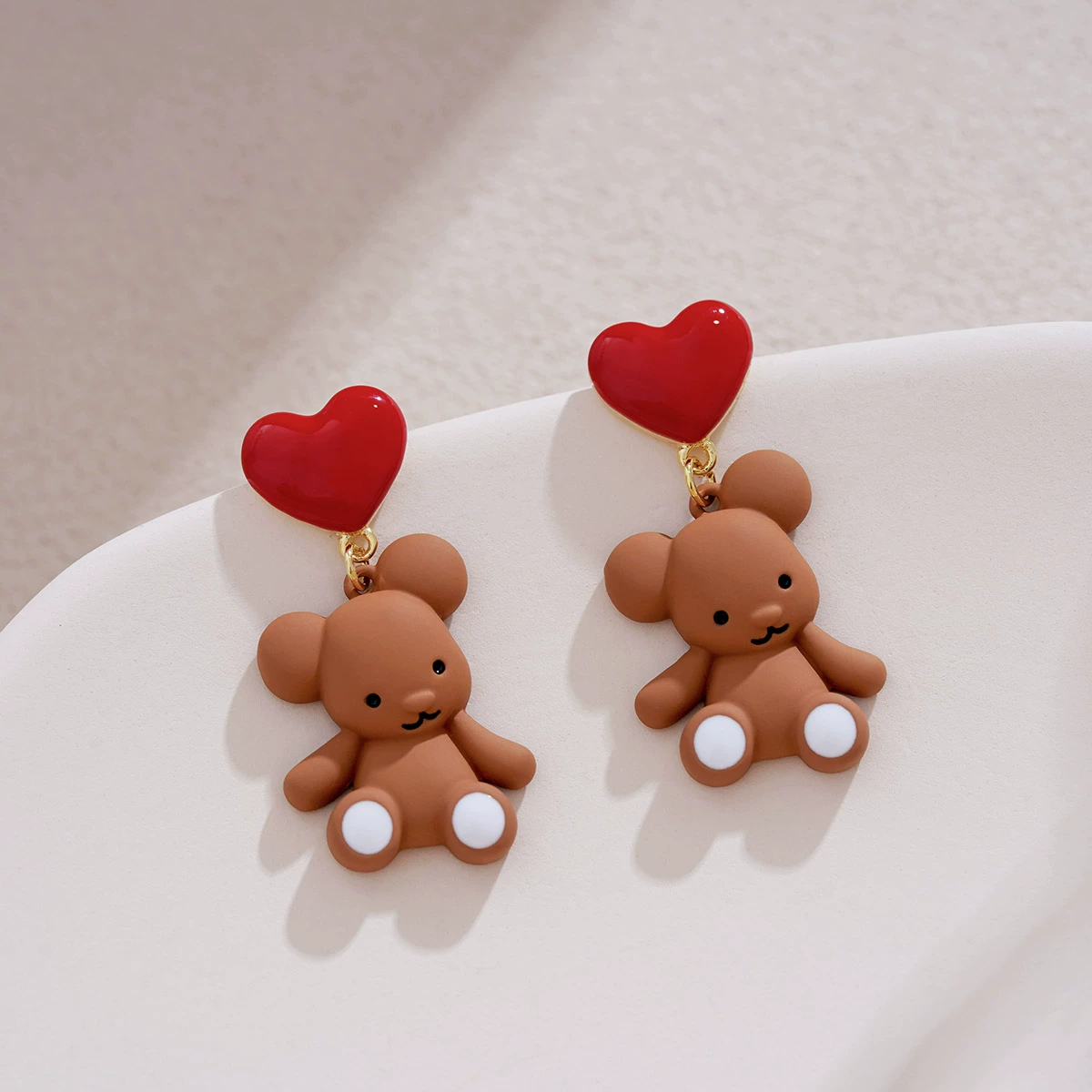 | nameOriginal | High-end earrings, tea style, unique design, bear earrings, red peach heart earrings, 2024 autumn and winter new earrings |