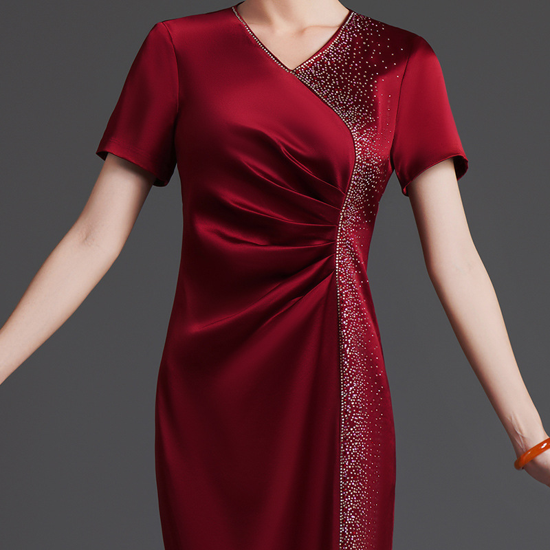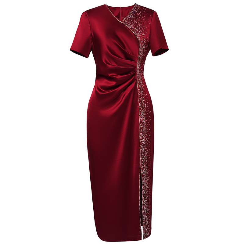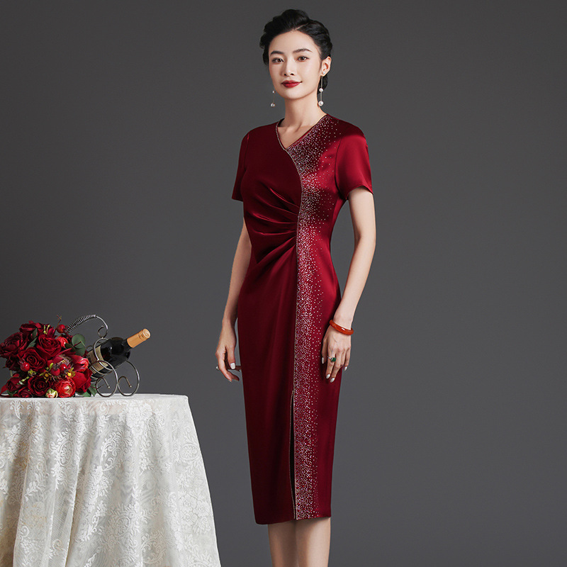 High-end elegant wedding dress autumn wedding dress for middle-aged mother wine red dress improved cheongsam one-piece delivery
