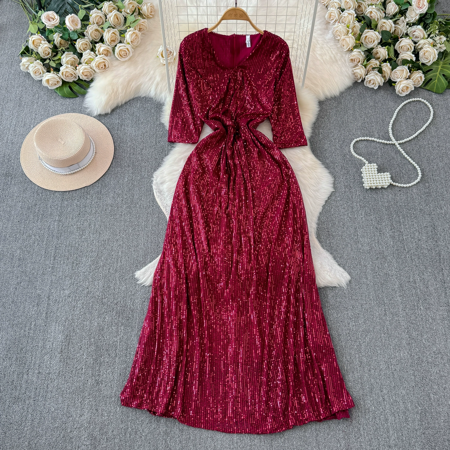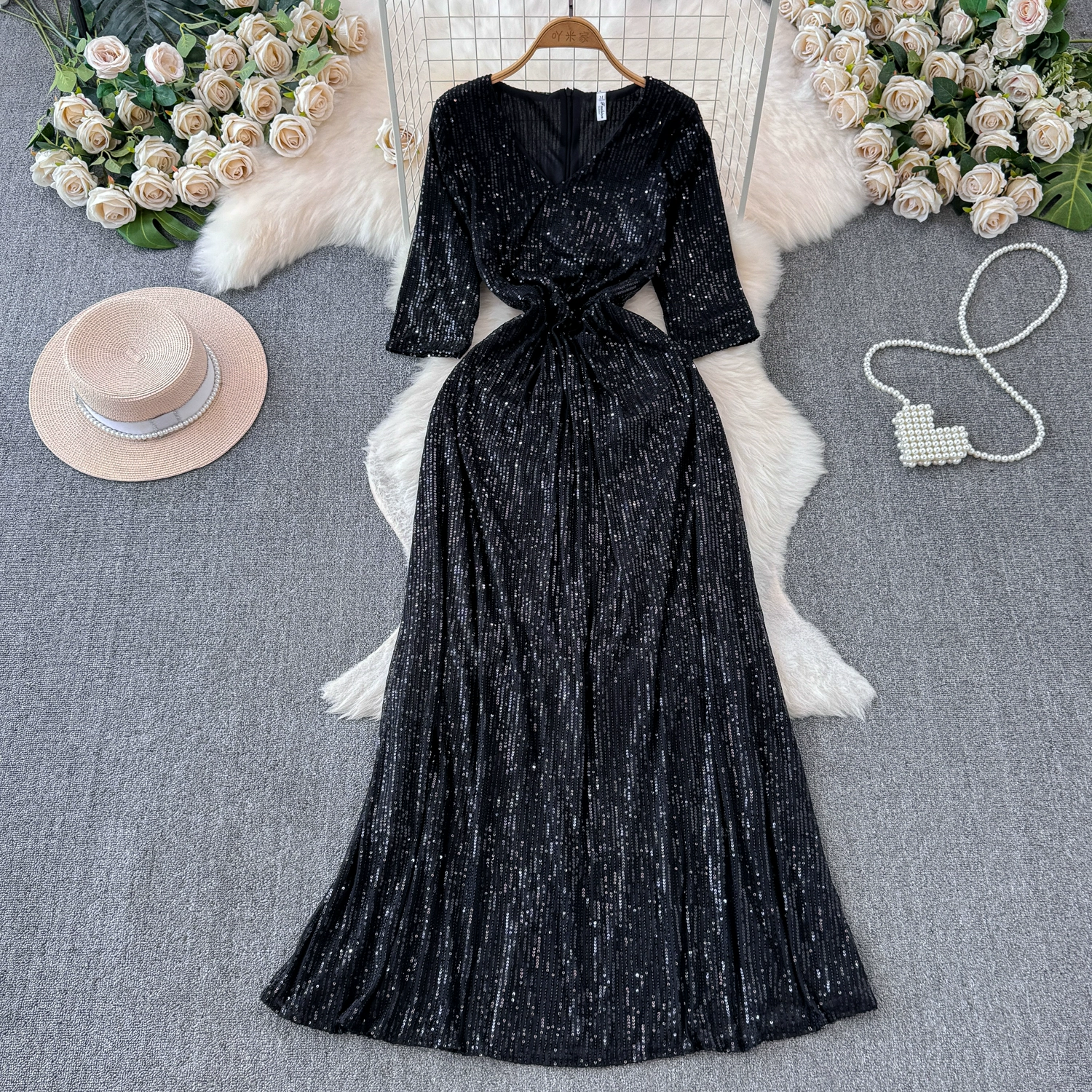 | nameOriginal | High-end evening dress, long skirt, banquet ladylike host, V-neck waist slimming sequined dress with wide swing |