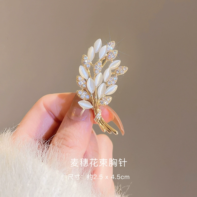 High-end exquisite cat’s eye stone wheat ear brooch women’s luxury design niche corsage temperament sweater pin accessories