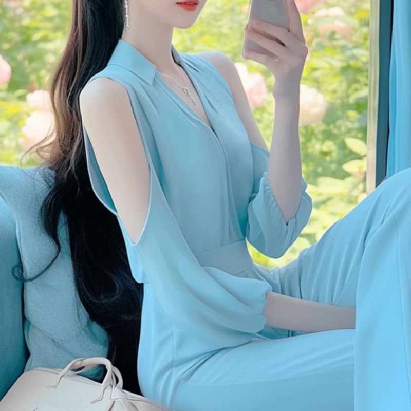 | nameOriginal | High-end Exquisite Royal Sister-style Design Sense Jumpsuit Slim-fit Slim-fit High-end Sense Blue Open-shoulder Jumpsuit Women's Summer |