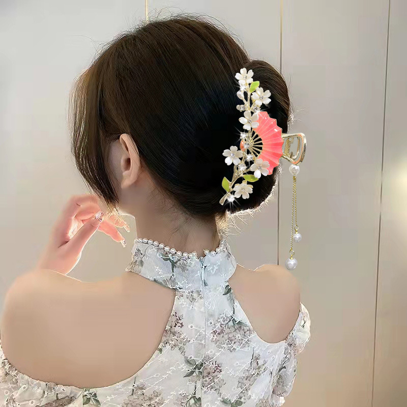 | nameOriginal | High-end fan-shaped flower clip large ins style back head shark clip retro hairpin high-grade hair accessories wholesale |