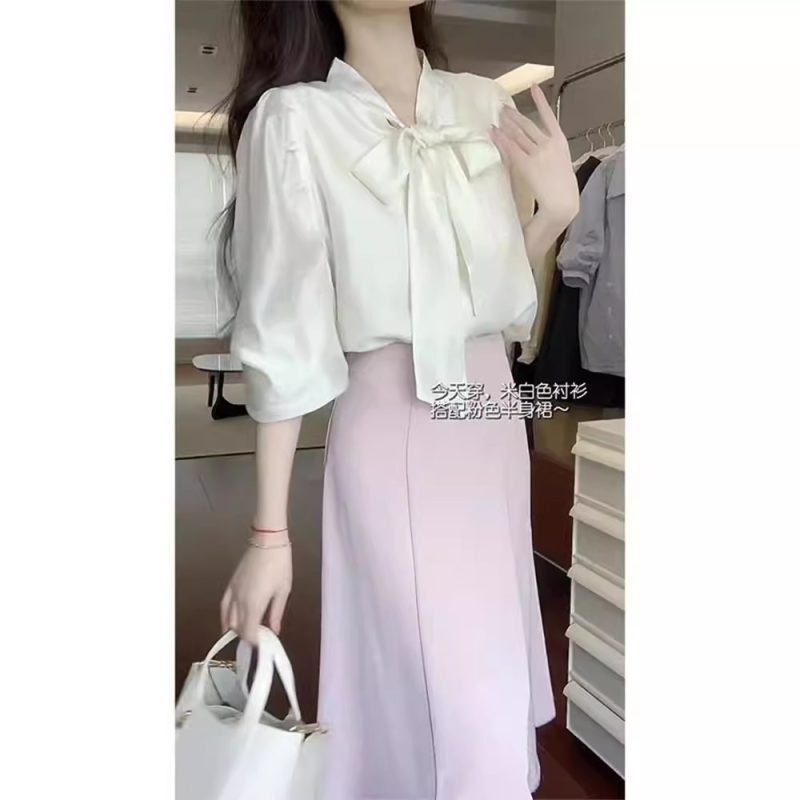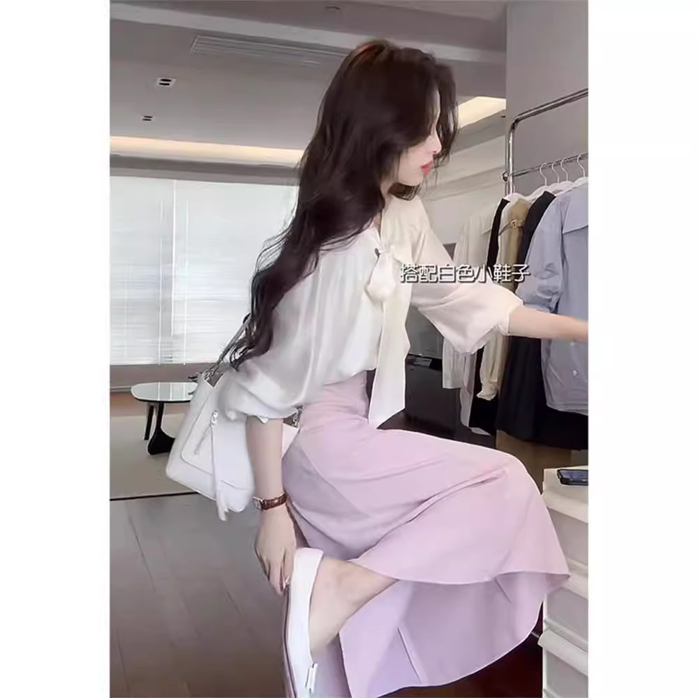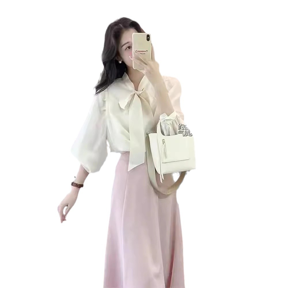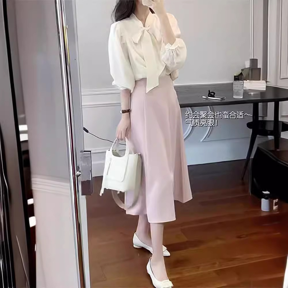 | nameOriginal | High-end fashion long sleeve bow top pink skirt spring and summer 2024 new professional intellectual two-piece suit |