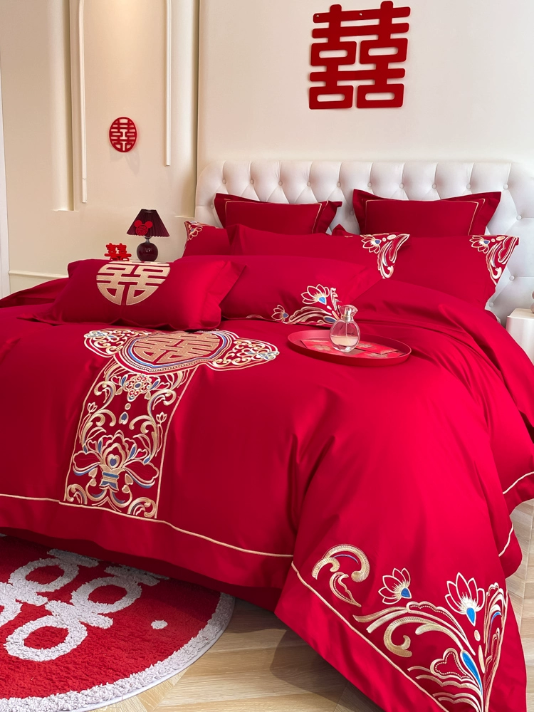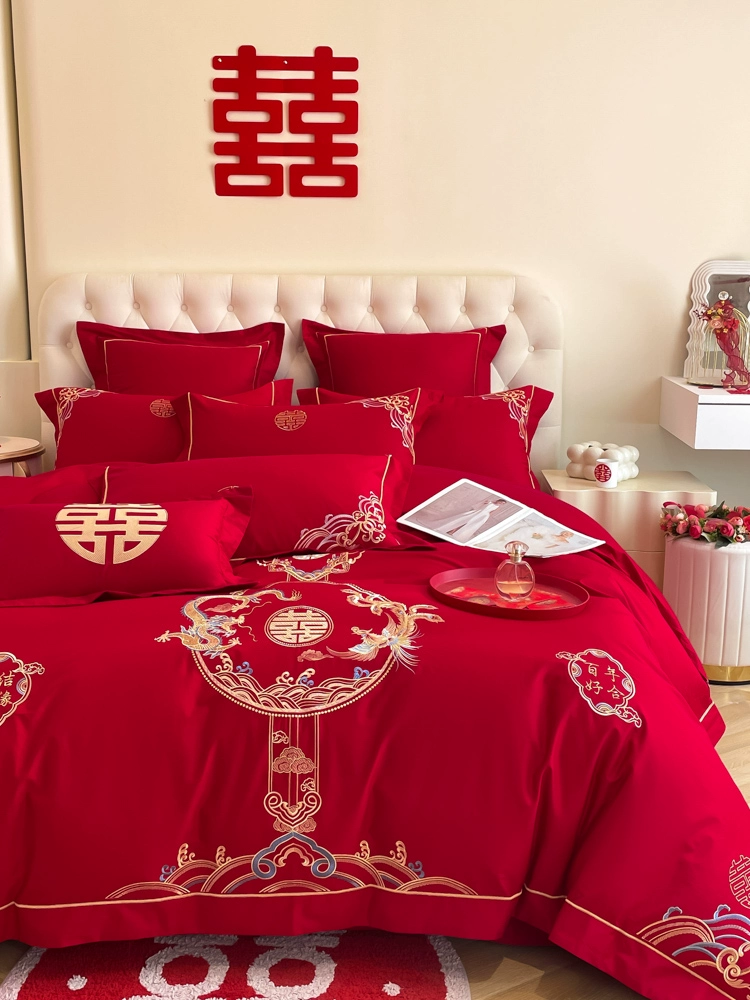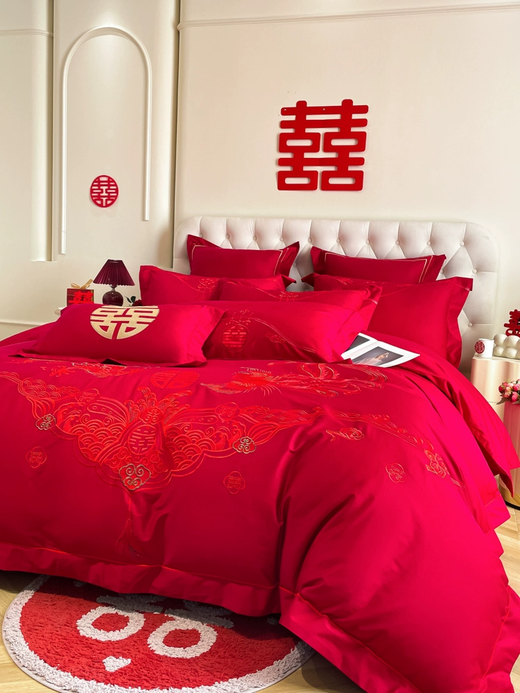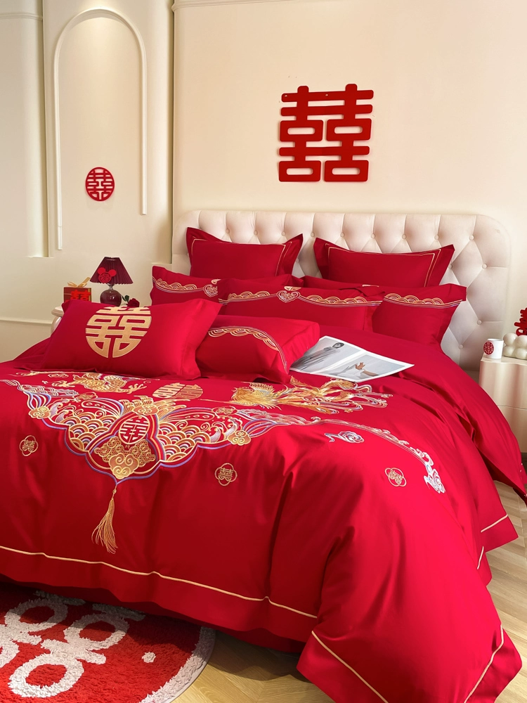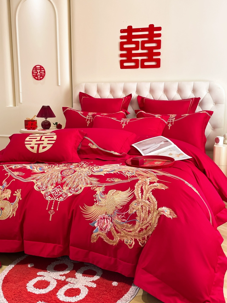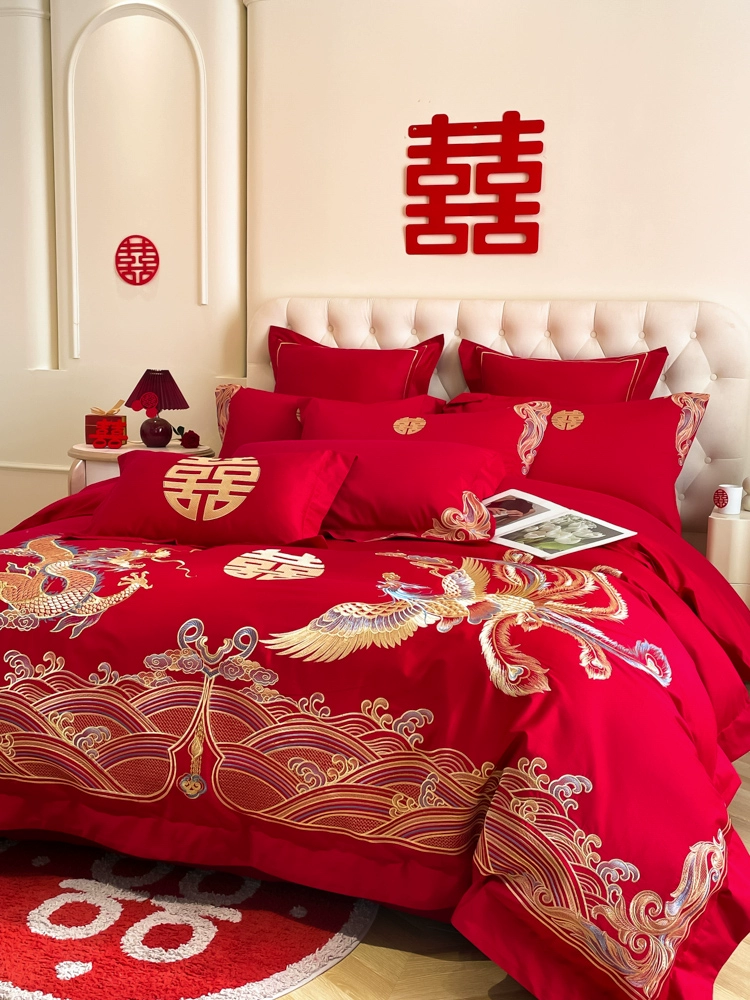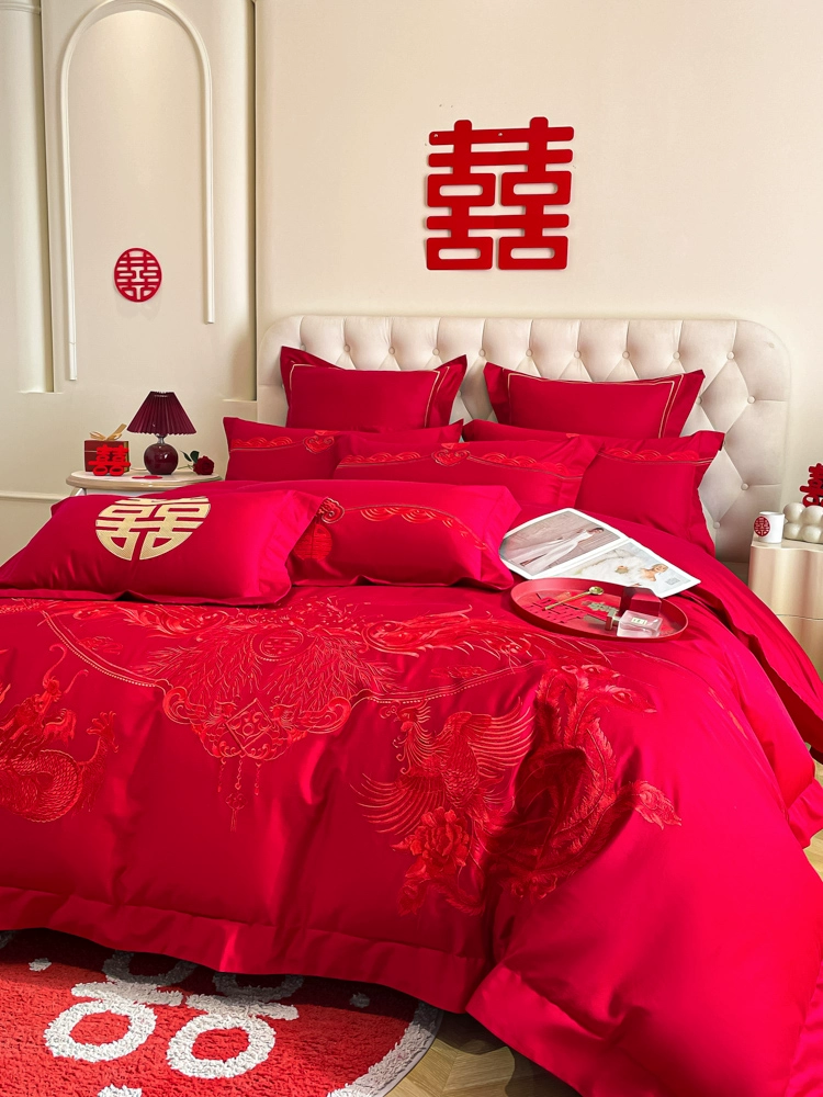 | nameOriginal | High-end festive bright red dragon and phoenix bed sheet set of four |